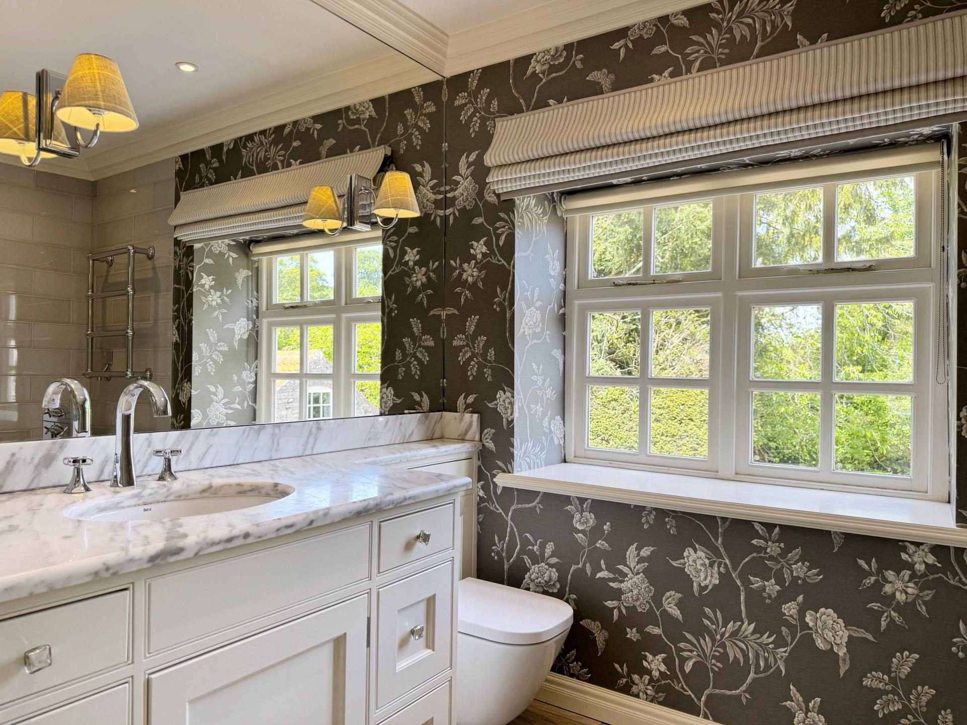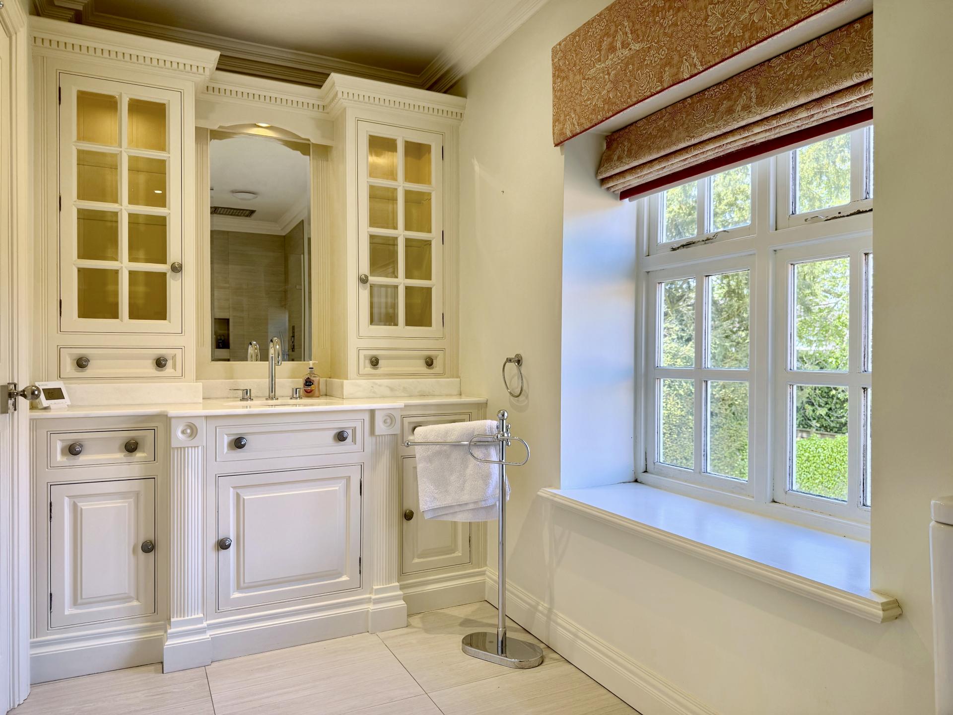 The first floor sees four tastefully decorated double bedrooms all of which have bespoke built in storage, and each having a beautiful outlook on to the picturesque gardens below. The principle suite benefits from contemporary en suite facilities whilst the other three bedroom are served by a well-appointed house bathroom with built in vanity storage and decorated in keeping with the rest of this exquisite home.