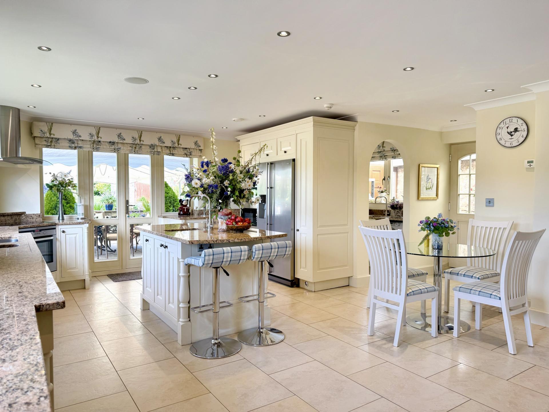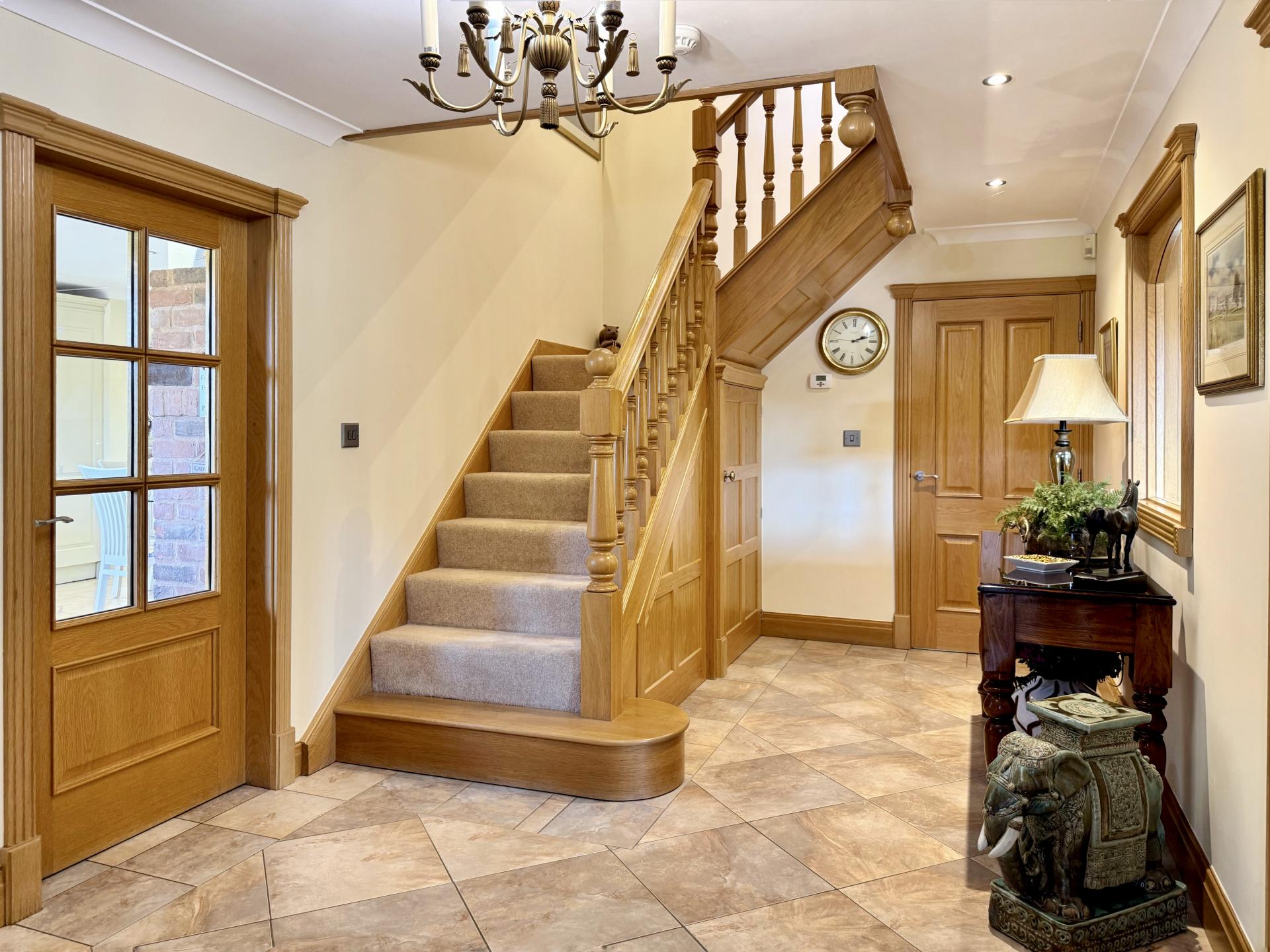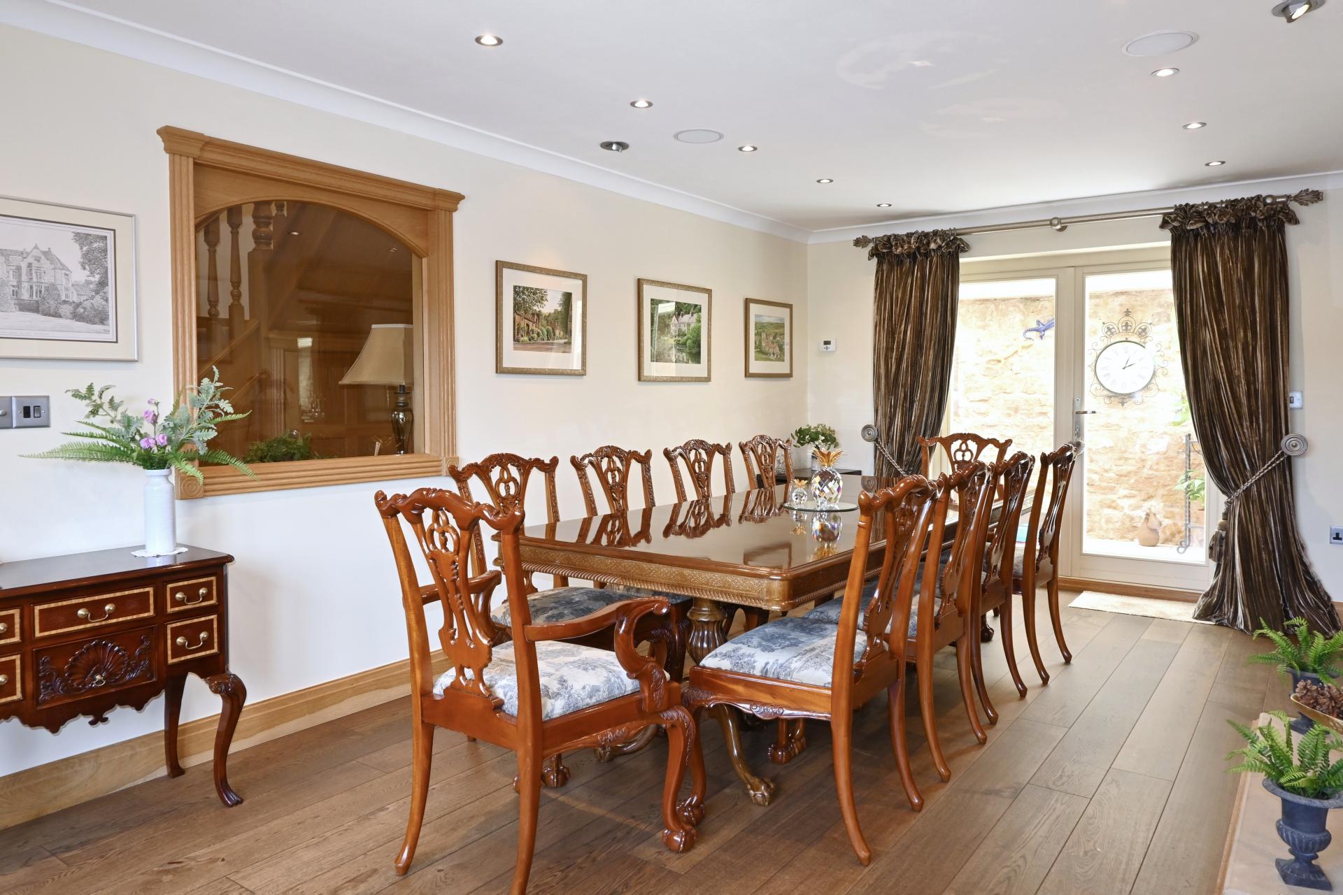 The accommodation briefly comprises of a welcoming entrance hall which leads to the ground floor living space and cloakroom. A bespoke oak staircase gives a real spectacle to the room and raising to the first and second floors. The heart of the home is a stunning open plan breakfast kitchen which sees an extensive range of hardwood base and wall units, central island and a range of built in appliances. Doors seamlessly flow onto a patio area which provides the ideal space to entertain guests all year round. Off the kitchen is a large pantry and utility room which could double as a handy back kitchen for larger parties. Two spacious reception rooms give both dining and seating areas with a log burning fire and views over the front elevation. The ground floor also has a garden room and another reception area currently being used as a fitness suite.