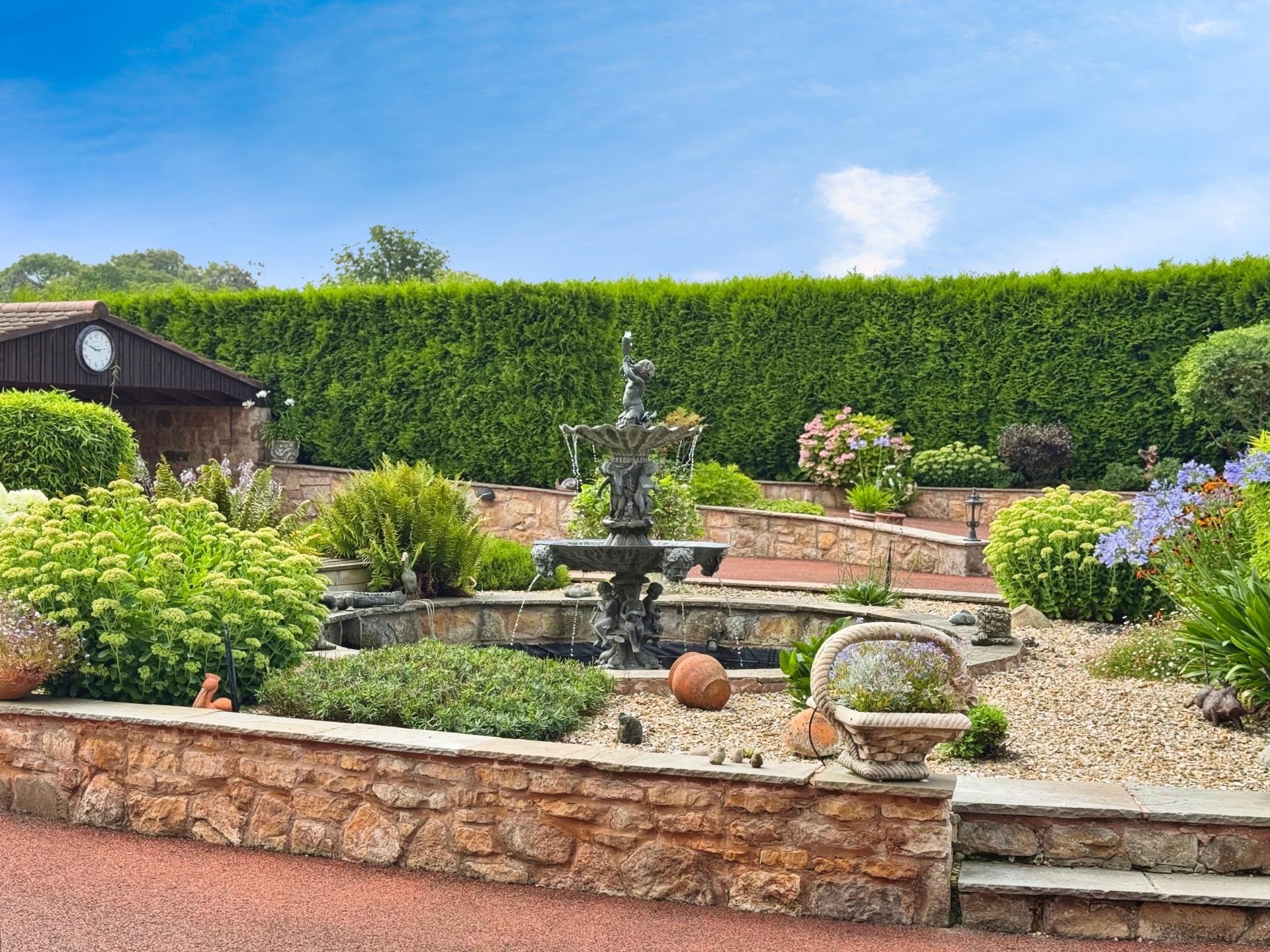 Externally the property is approached through a gated entrance which leads to an ‘in and out’ driveway giving ample parking for a number of vehicles and beautiful central water feature.
