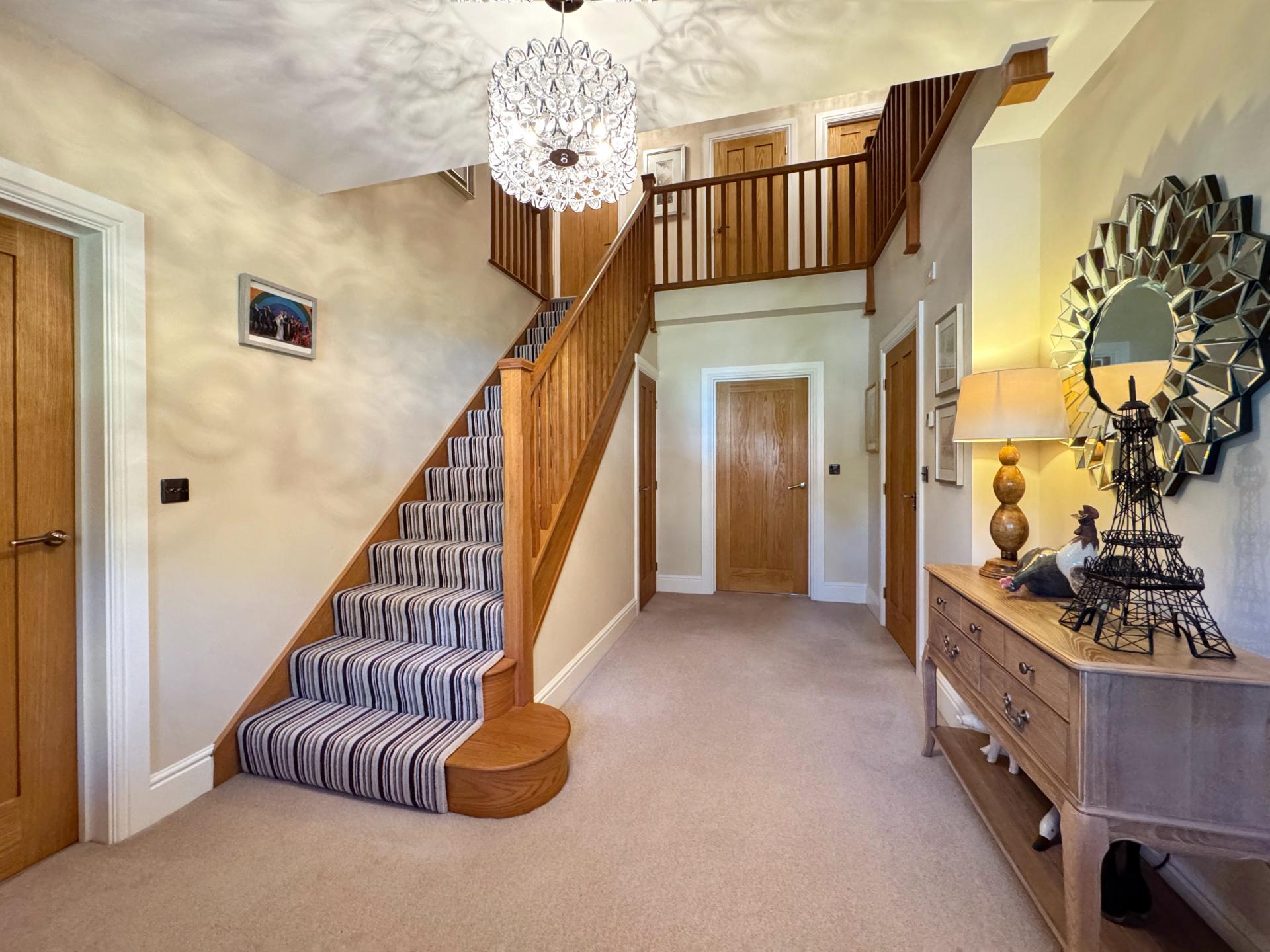 An oak staircase leads to a light and airy galleried landing area which flows to a total of five double bedrooms in all. The principal suite boasts a large double bedroom with fitted wardrobes, a walk-in wardrobe/dressing room along with en suite shower room. Bedroom two could double as a guest suite and again sees fitted wardrobe space and a well-appointed shower room. The further three bedroom are all served by a luxuriously fitted house bathroom benefiting from both bath and shower facilities.