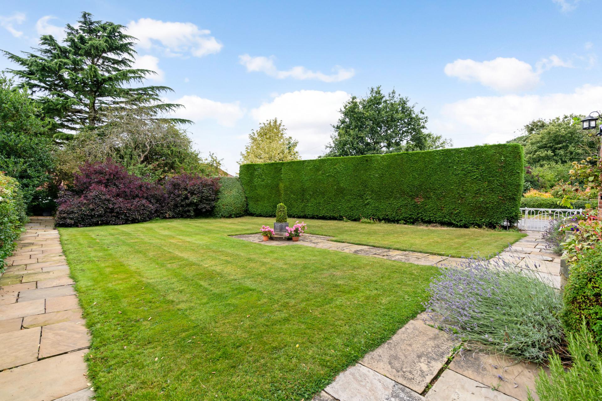 The delightful, well-manicured gardens are positioned to the front of the property and are divided into three areas, the first being directly in front of the house, with well-stocked flower beds and borders, a stretch of lawn and a hedged boundary.