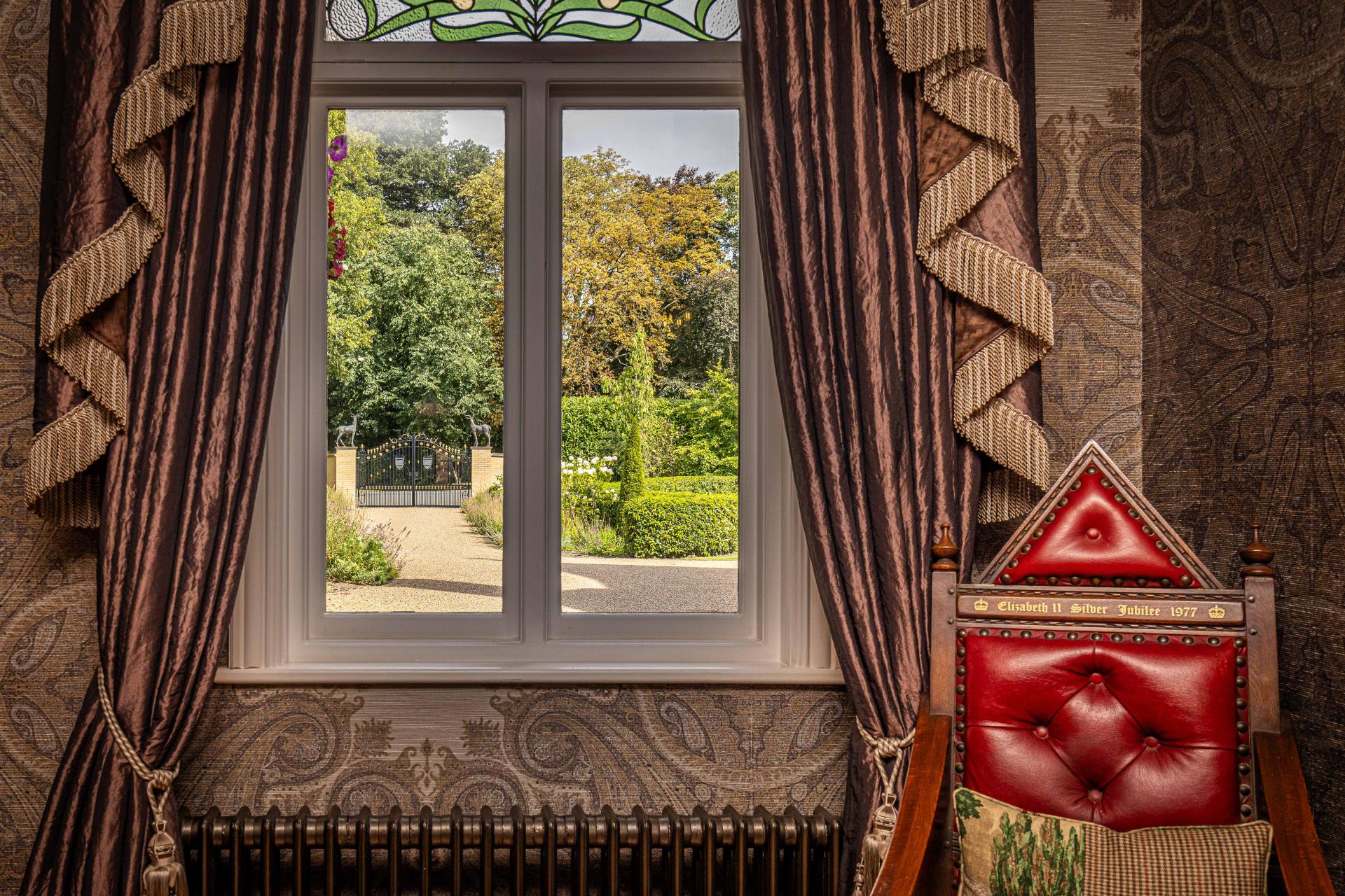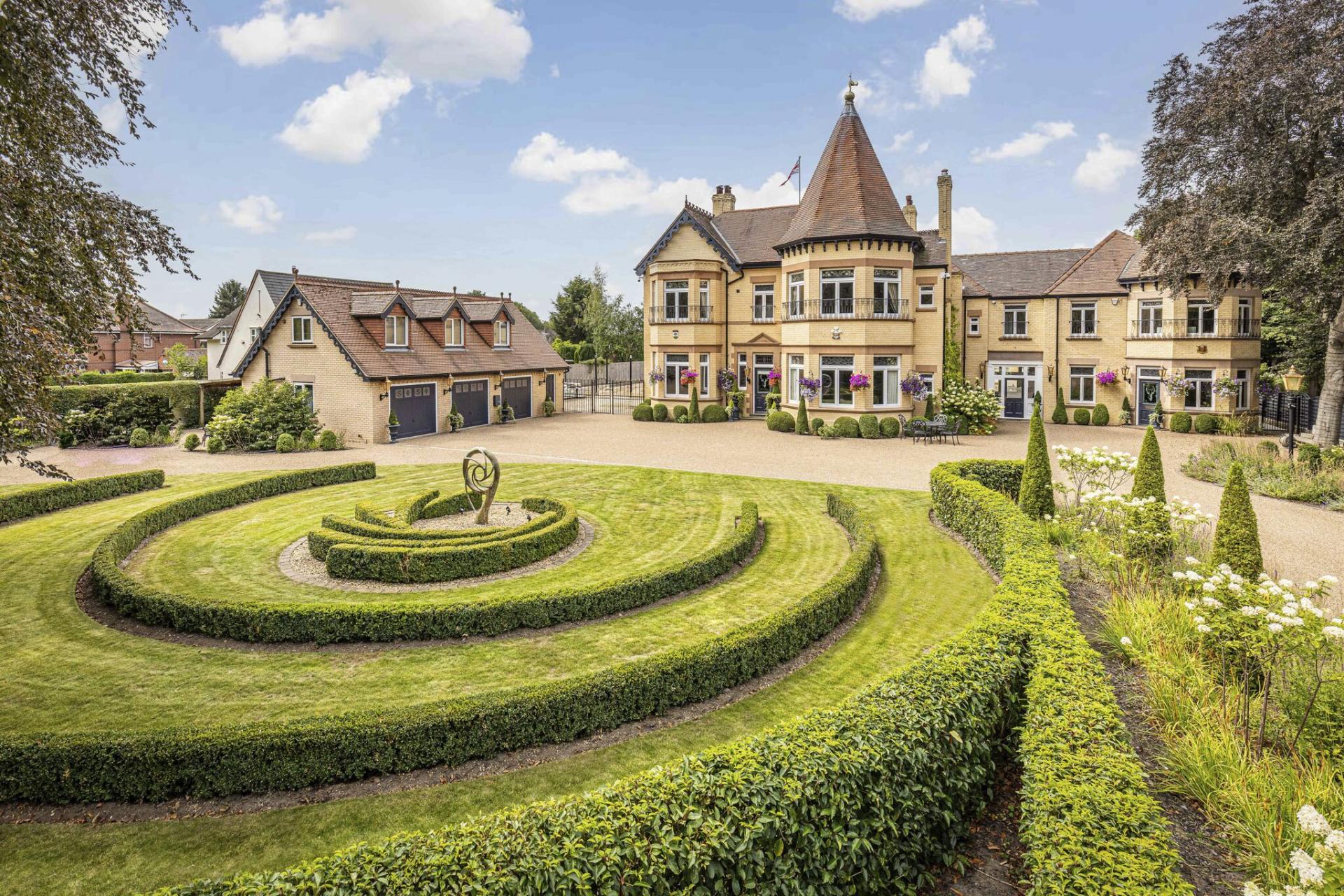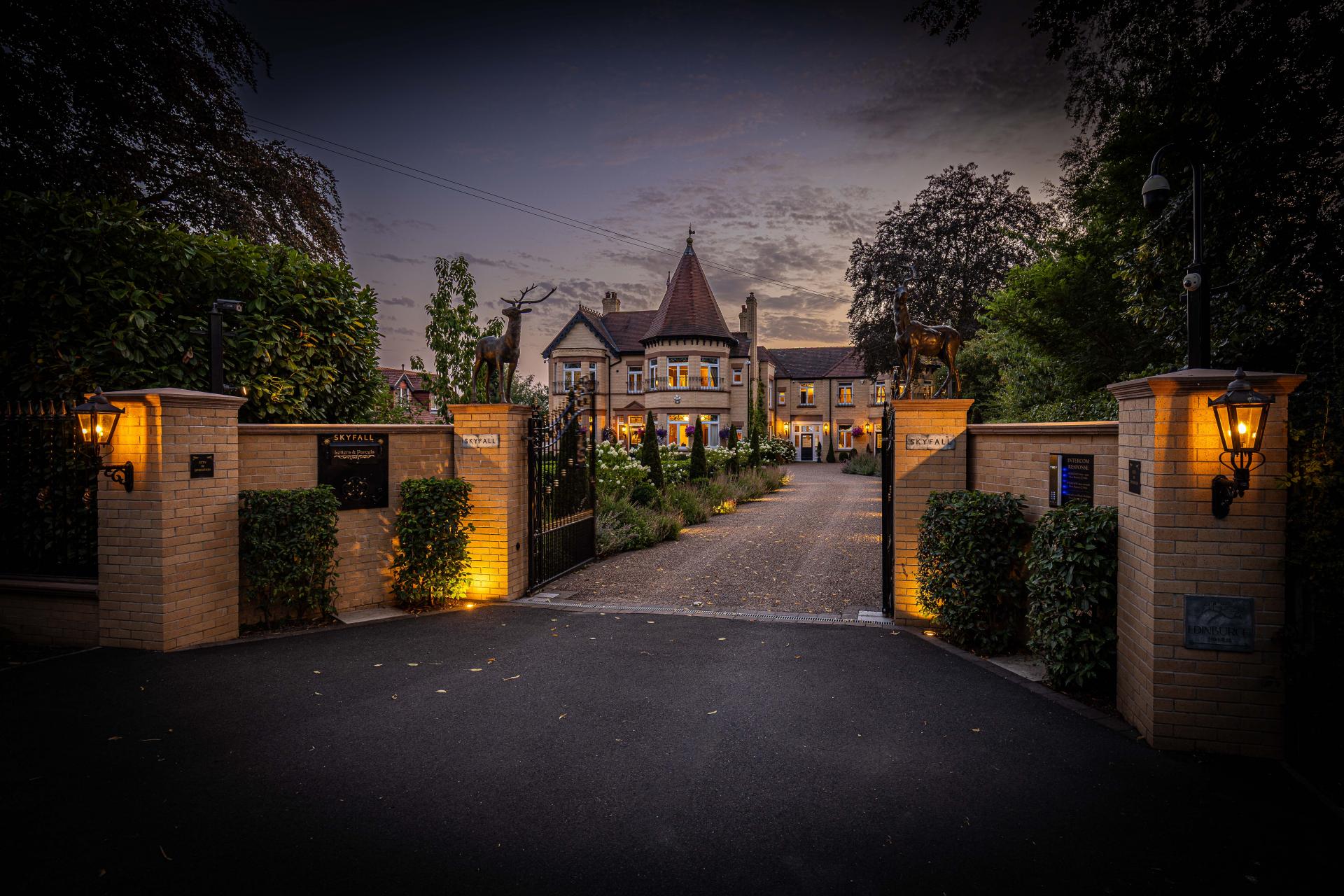 The beautifully landscaped grounds have been well conceived and provide a tranquil oasis from the outside world with established trees flanking the boundaries. A new addition of a ‘carriage’ driveway immediately adds to the grandeur upon arrival and leads to the exquisitely designed gardens, seeing mature planting and manicured lawns. A bespoke sculpture and themed boxed hedging give a direct nod to the opening credits of the James Bond films, again adding to the overall drama of what is on offer at Skyfall.