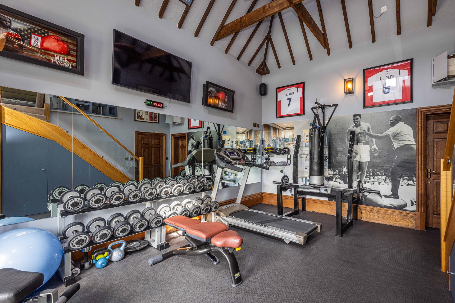 Leisure facilities are also in abundance, with a large gym being the perfect place to work out from home, as well as a luxuriously fitted bathroom which has a host of spa conveniences to hand. Above the gym is a potential annex area with a beautifully appointed bedroom suite.