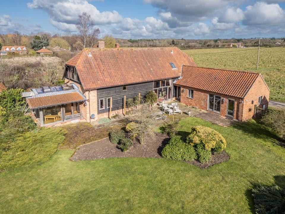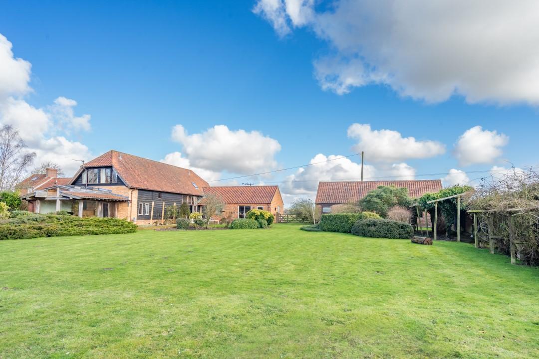 Surrounded by farmland offering wonderful views, this barn conversion sits in an idyllic position. Close to Bungay and part of a friendly village, life here offers the best of the countryside without being cut off from community. The property itself is a fabulous family home with generous rooms perfect for parties too. It’s enormously versatile and comes with a red brick outbuilding offering annexe potential (stp), a further unconverted barn and a workshop, all set in gorgeous gardens, waiting to be enjoyed.