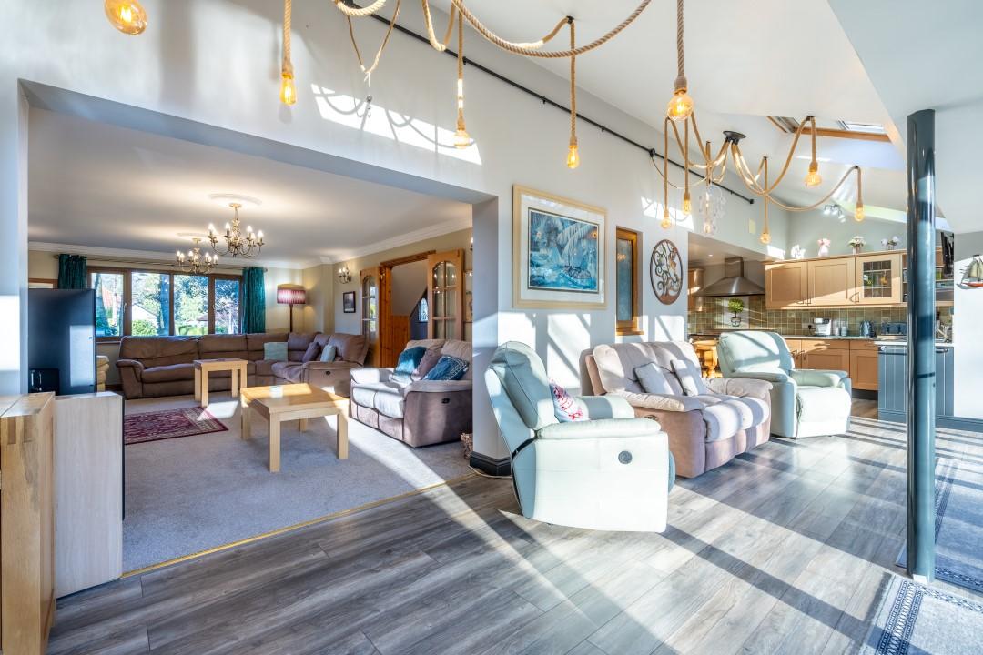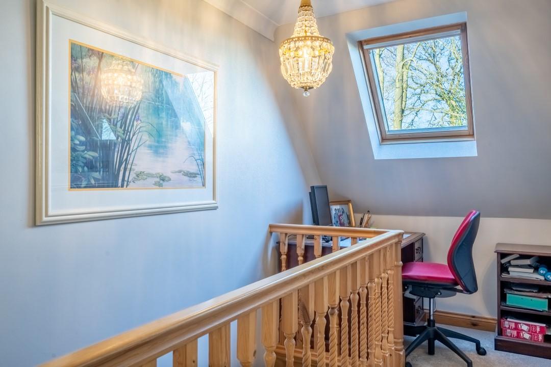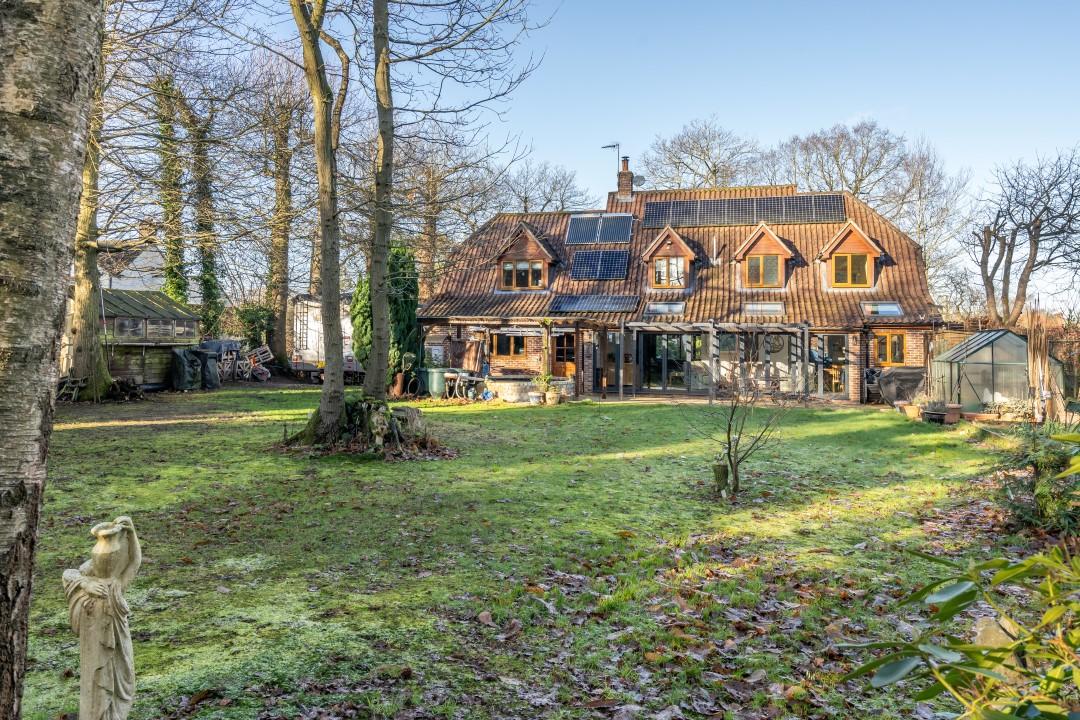 This impressive home has its very own woodland, as well as a sunny, south-facing garden. Built by the owners to their own design, it’s wonderfully private and a real retreat, but you’re also part of a friendly community here, close to schools, shops and leisure facilities, with lovely walks on the doorstep.
