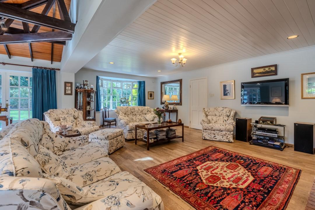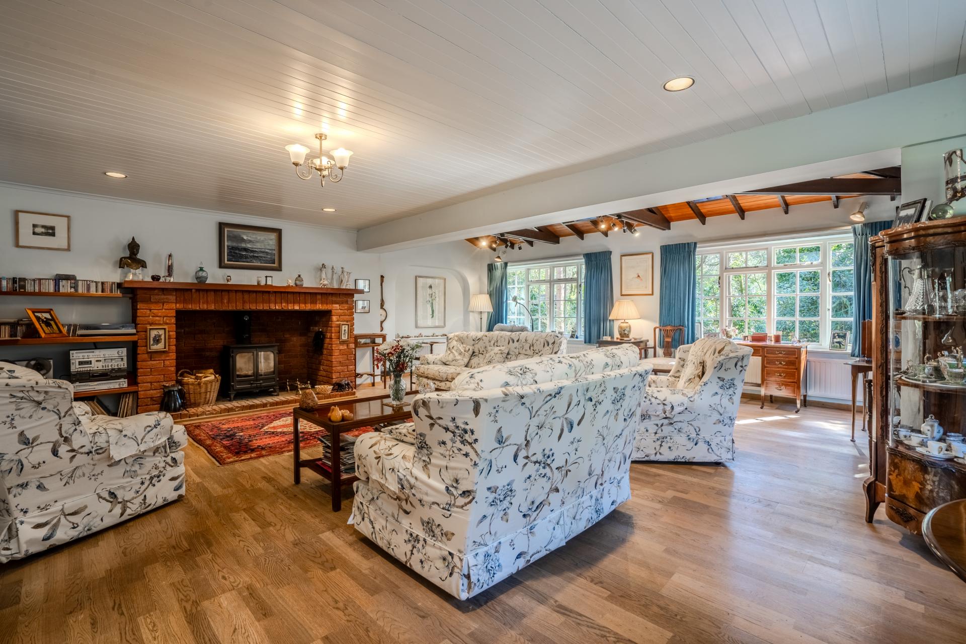 Nestled beautifully in the centre of a 1.5-acre plot on the most prestigious road in the village, surrounded by mature trees and woodland, with sunny and shady spots where you can sit and take it all in, this impressive home has plenty to surprise and delight the most discerning of purchasers. Updated and improved over the years, it offers a huge amount of space inside and out and is enormously versatile.