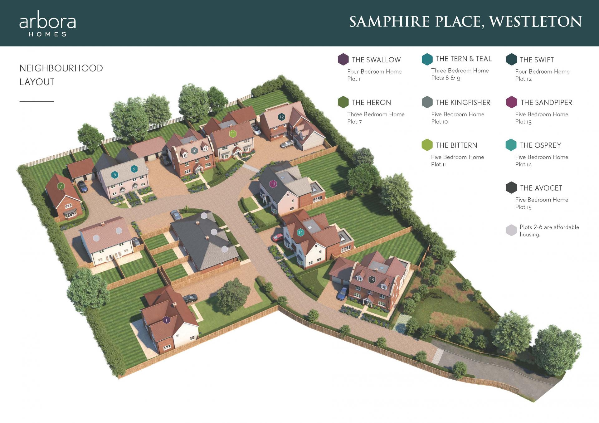 Samphire Place has a selection of beautiful 2, 3, 4 and 5 bedroom homes to choose from. With the usual high specication and eco-friendly principles akin with Arbora Homes, every home showcases meticulous attention to detail and high quality workmanship crafting serene, inviting and practical homes. These energy efficient homes boast open-plan living spaces and multifunctional kitchens that overlook the rear gardens. As with all Arbora homes, each of the luxury properties comes with a two year Arbora Homes Customer Care period and 10 year ICW guarantee.Predicted EPC Rating B
