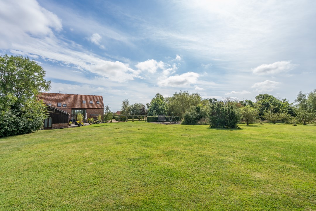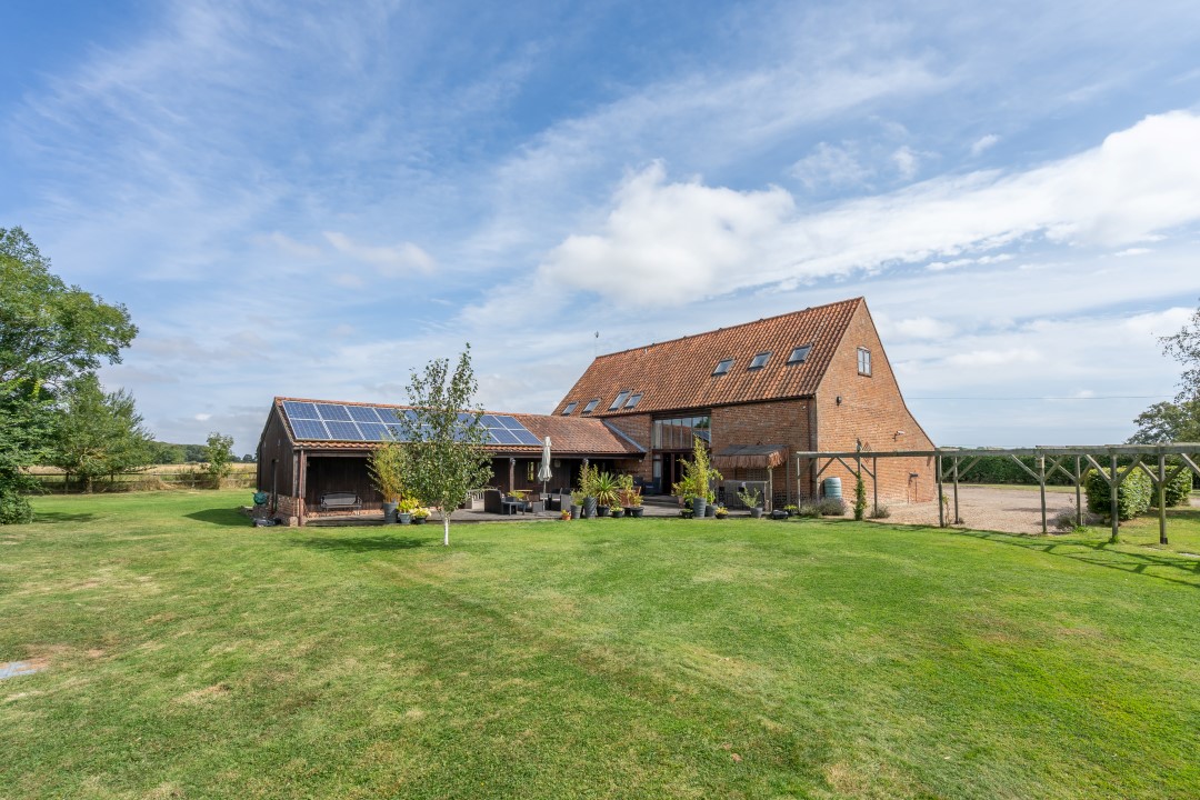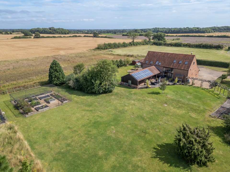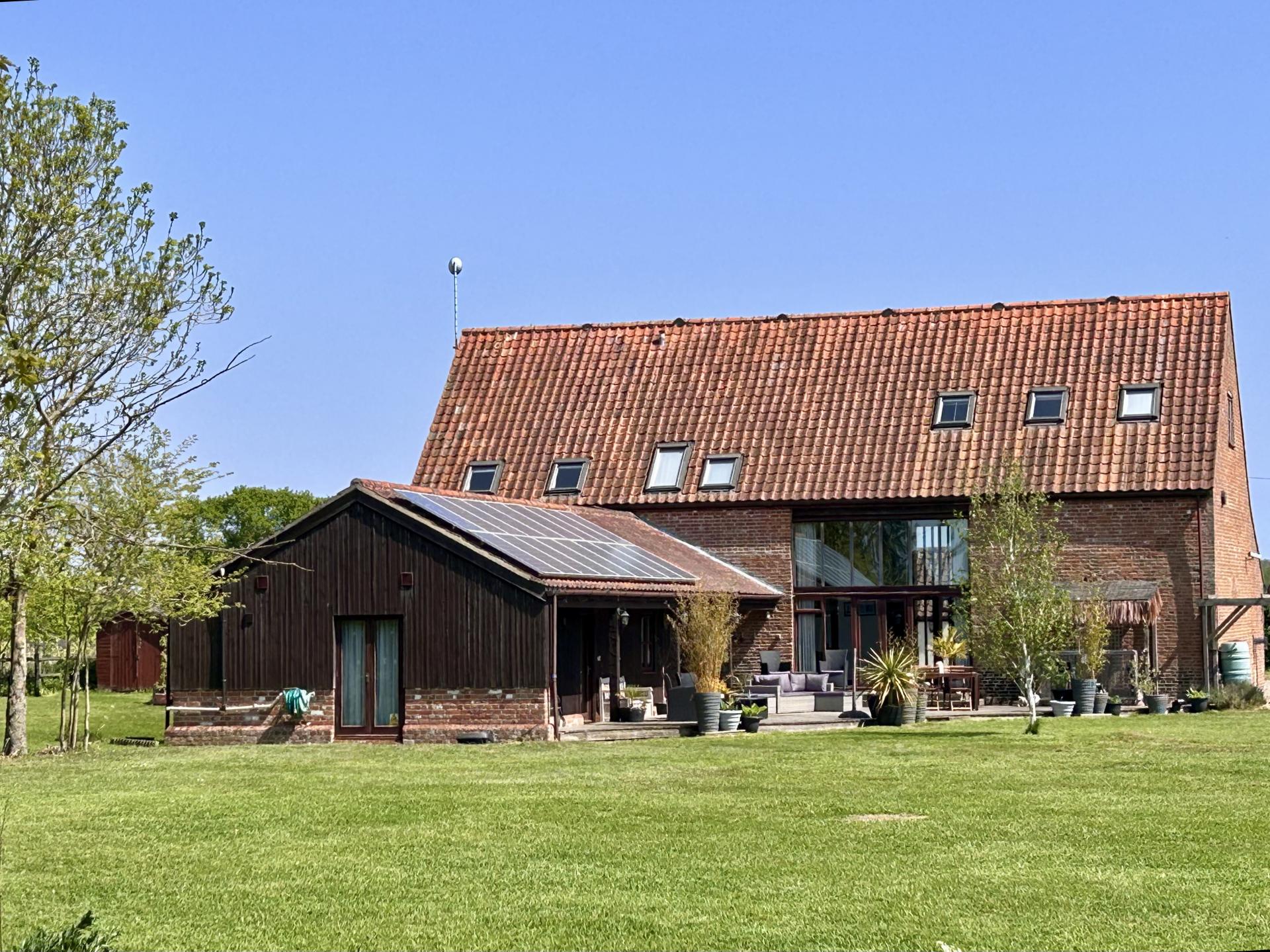 Escape to this exceptional barn conversion nestled with 3,2 acres of private grounds, minutes from Southwold. This property offers a rare opportunity to embrace peaceful rural living with easy reach of the coast. Step inside to discover a light and airy open plan living space, beautifully enhanced by exposed beams and a dramatic vaulted ceiling. Large floor to ceiling windows and patio doors flood the interior with natural light and seamlessly connect the outdoors, perfect for entertaining. This unique property effortlessly blends the character and modern living. The substantial grounds offer a haven for wildlife, providing a tranquil retreat and a strong connection with nature.