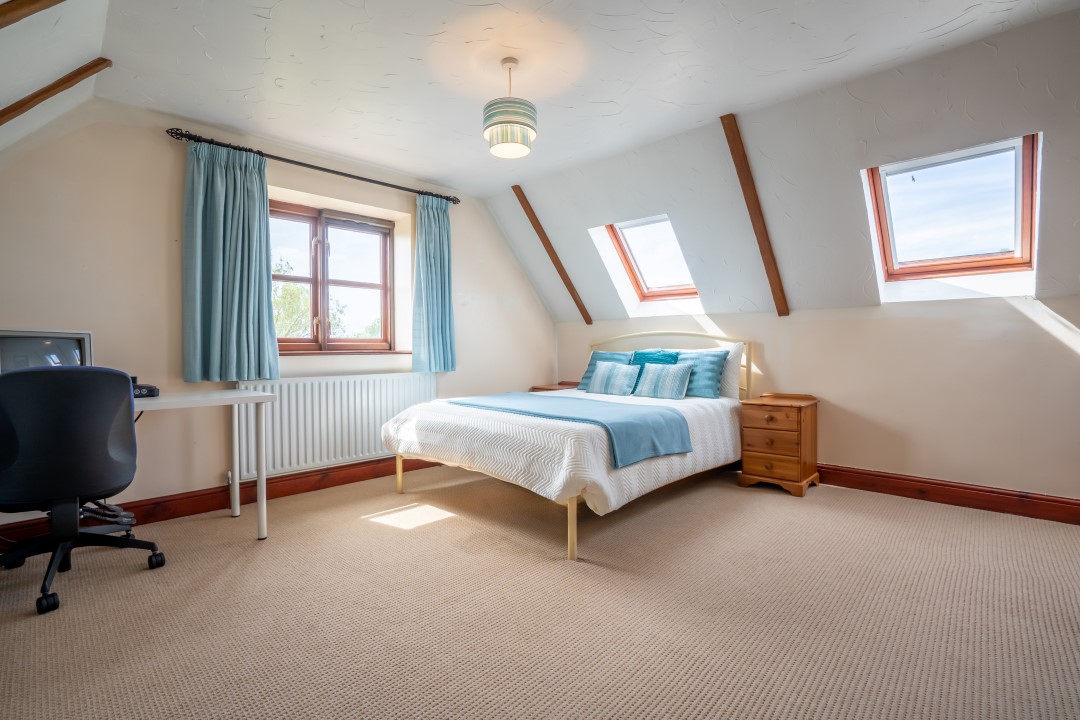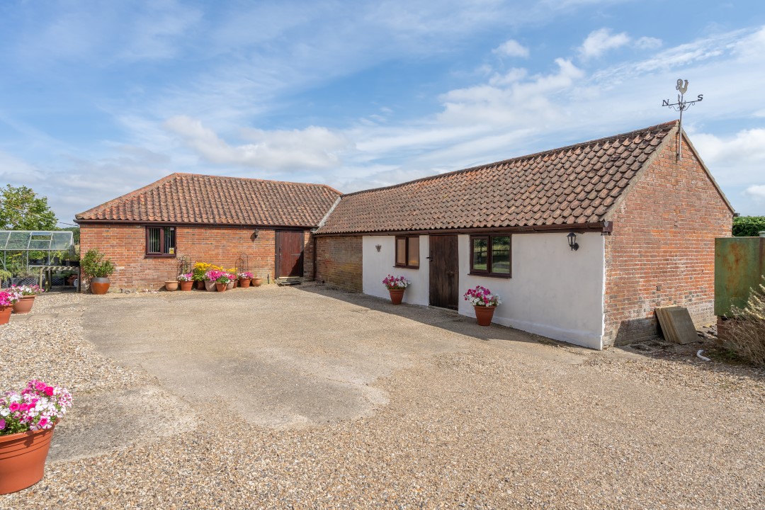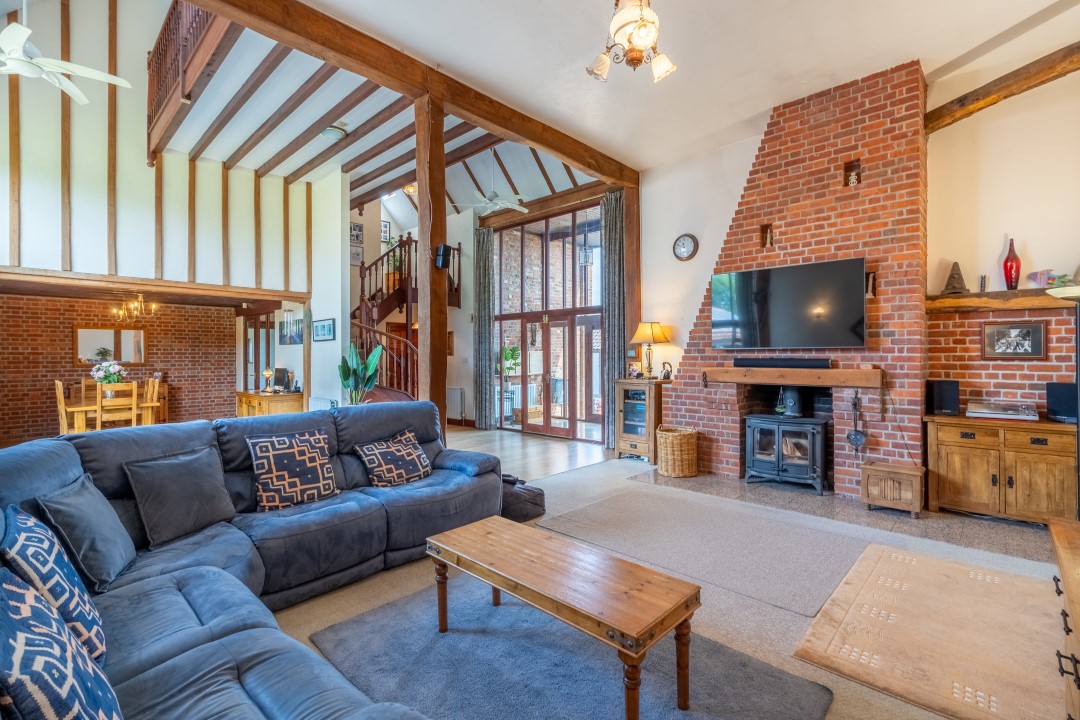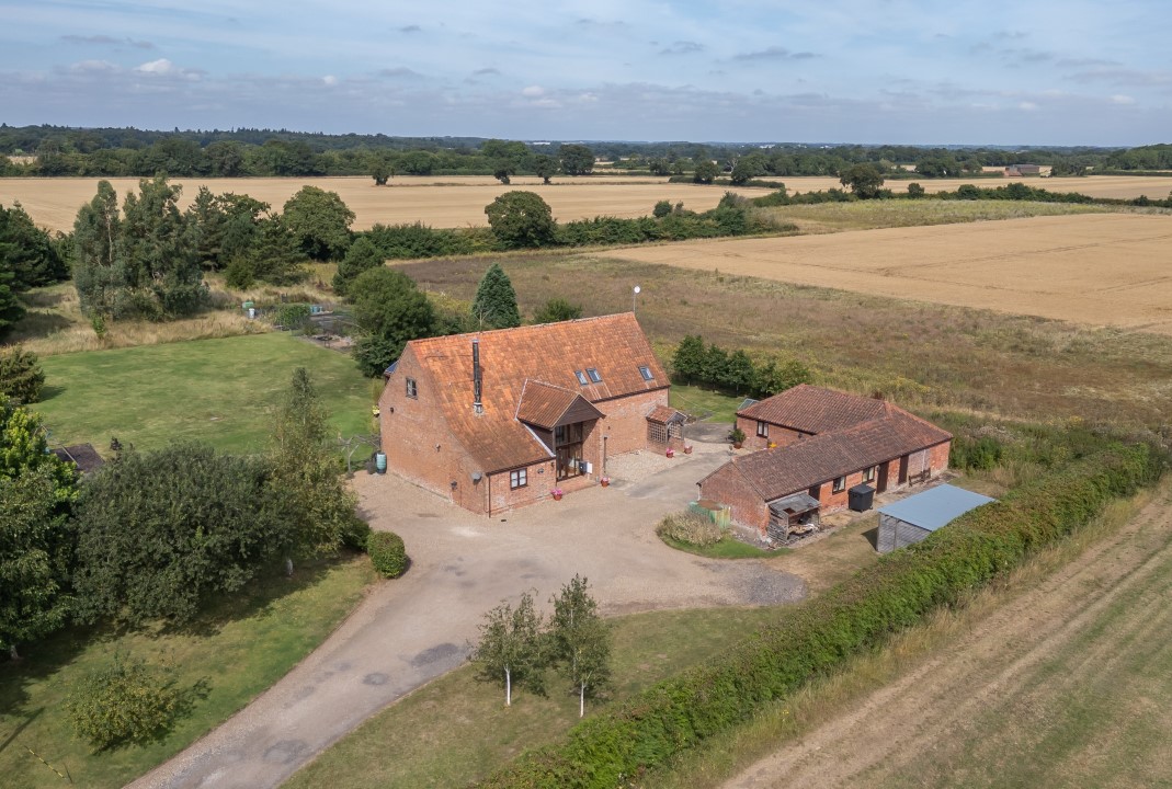 Escape to this exceptional barn conversion nestled with 3,2 acres of private grounds, minutes from Southwold. This property offers a rare opportunity to embrace peaceful rural living with easy reach of the coast. Step inside to discover a light and airy open plan living space, beautifully enhanced by exposed beams and a dramatic vaulted ceiling. Large floor to ceiling windows and patio doors flood the interior with natural light and seamlessly connect the outdoors, perfect for entertaining. This unique property effortlessly blends the character and modern living. The substantial grounds offer a haven for wildlife, providing a tranquil retreat and a strong connection with nature.