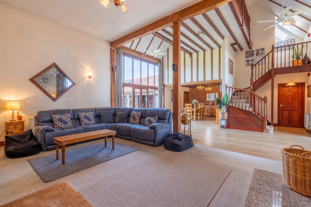 - Large Open Plan Living Space with Exposed Beams and Vaulted Ceilings