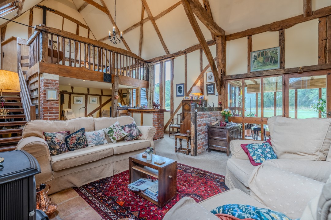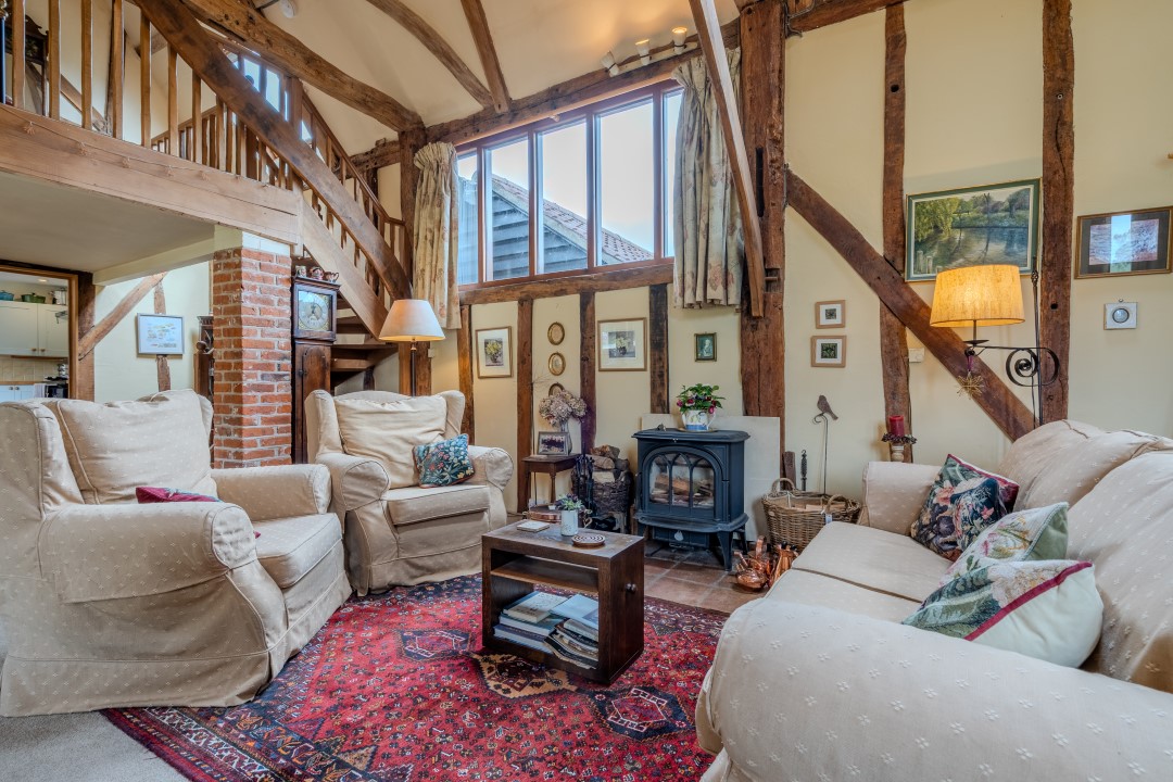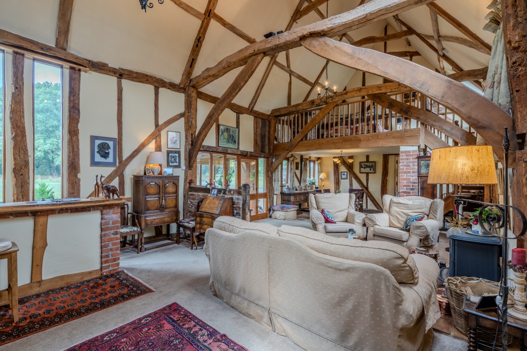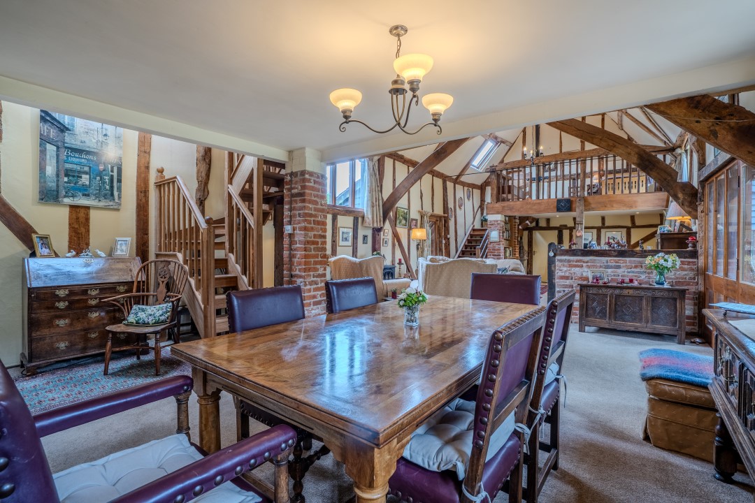 Set on the edge of a large common, open farmland beyond, this beautiful timber framed barn has been converted into a fabulous family home by the current owners. With enormous sociable spaces, cosy more intimate areas, a sunny and secluded garden, plus several large outbuildings offering income or conversion potential, it’s a brilliant all-rounder and sure to have broad appeal.