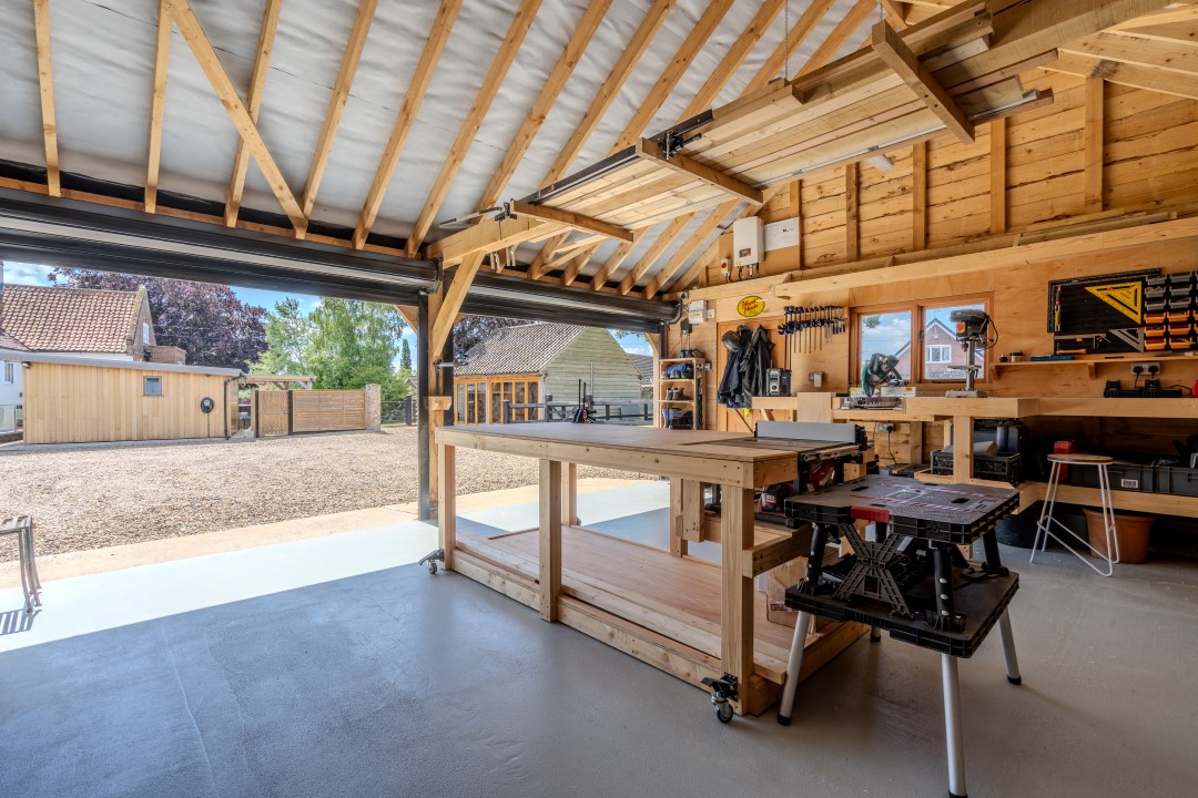 - Double Cart Lodge with Solar Panels incorporates a Large Workshop
