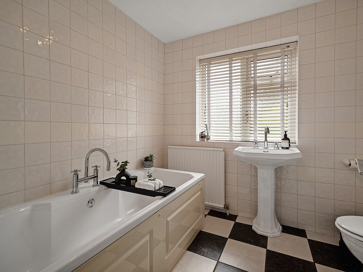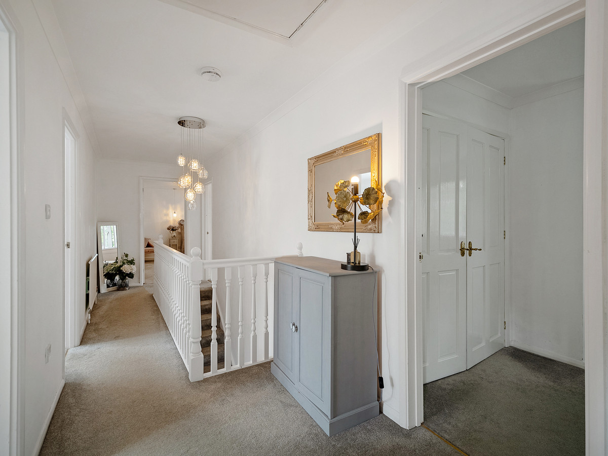 Upstairs, you’ll find a well-appointed family bathroom and five generous bedrooms. Two of these bedrooms boast en-suite shower rooms, while three feature fitted wardrobes. The property benefits from gas-fired central heating and double glazing throughout.