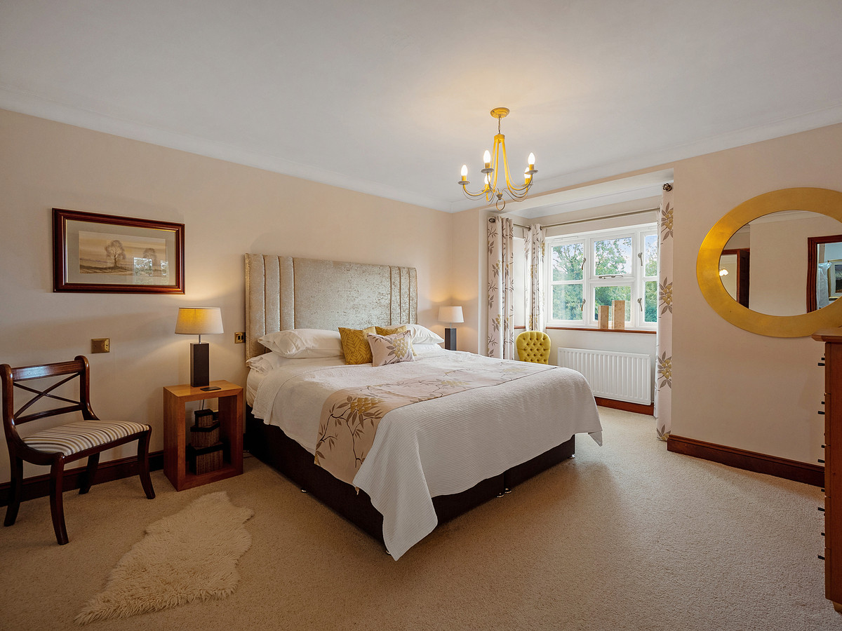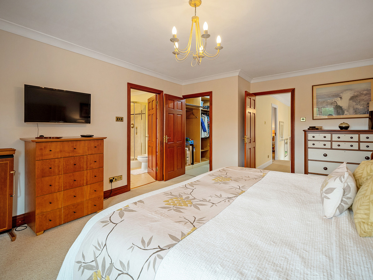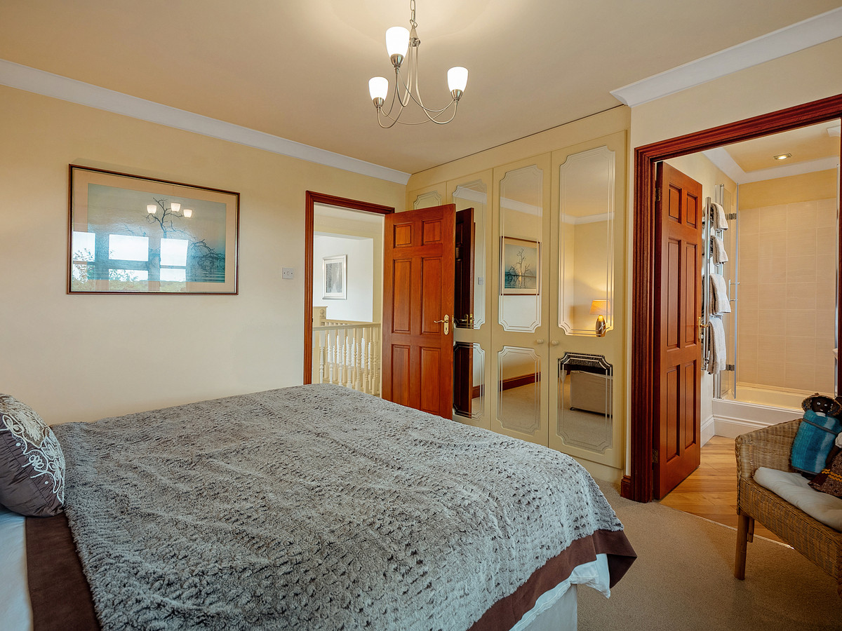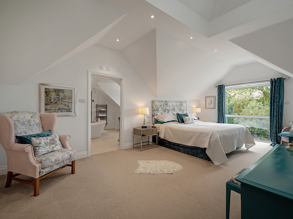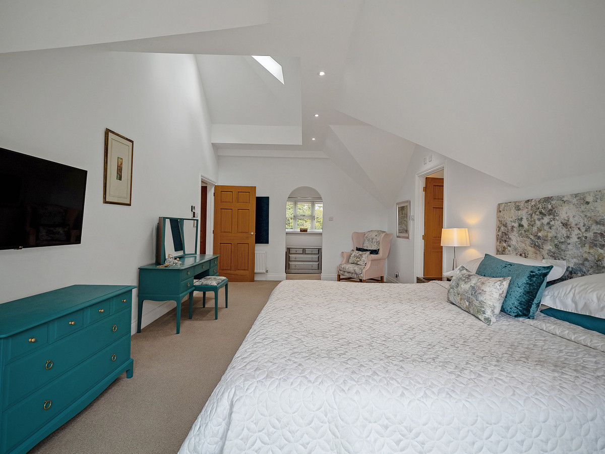 Halfway up the stairs, you'll find a charming apartment perfect for children or teenagers, featuring a lounge/games room, bathroom, and two king-size bedrooms. Bedroom 3 is an elegant king-size room with built-in wardrobes and an ensuite shower, offering a comfortable and private space. Bedroom 4, a grand super king-size room, boasts a walk-in wardrobe, an ensuite bathroom with a luxurious shower, tiled flooring, and Adelphi sanitary ware. Bedroom 5 is another spacious king-size room with an ensuite shower, Velux windows with rain sensors, and a walk-in wardrobe. The master bedroom is a stunning super king-size suite, featuring Velux windows with blackout blinds, breathtaking garden views, a dressing room, and an opulent ensuite bathroom with a shower and three heated towel rails. In total, the property boasts six spacious bedrooms, each thoughtfully designed for comfort and elegance.