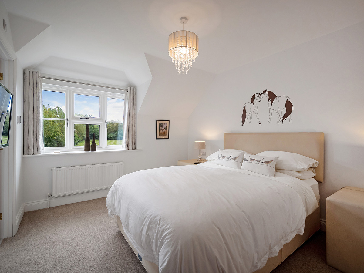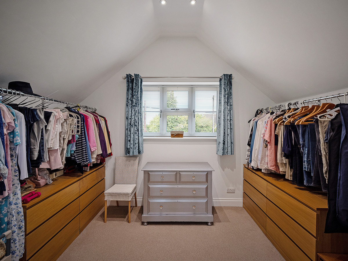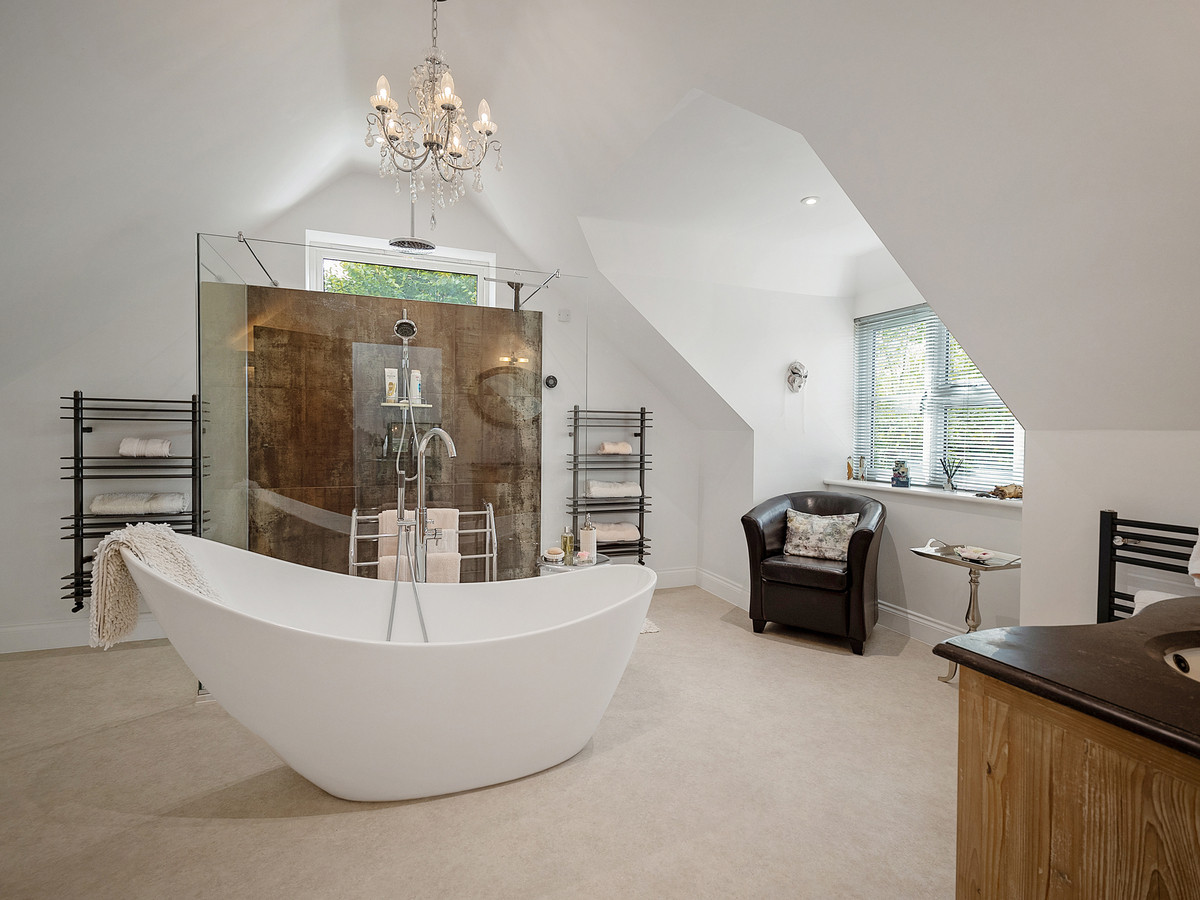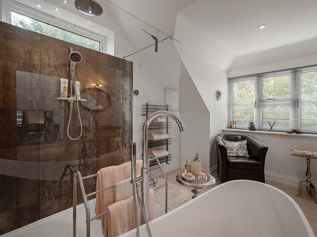 Halfway up the stairs, you'll find a charming apartment perfect for children or teenagers, featuring a lounge/games room, bathroom, and two king-size bedrooms. Bedroom 3 is an elegant king-size room with built-in wardrobes and an ensuite shower, offering a comfortable and private space. Bedroom 4, a grand super king-size room, boasts a walk-in wardrobe, an ensuite bathroom with a luxurious shower, tiled flooring, and Adelphi sanitary ware. Bedroom 5 is another spacious king-size room with an ensuite shower, Velux windows with rain sensors, and a walk-in wardrobe. The master bedroom is a stunning super king-size suite, featuring Velux windows with blackout blinds, breathtaking garden views, a dressing room, and an opulent ensuite bathroom with a shower and three heated towel rails. In total, the property boasts six spacious bedrooms, each thoughtfully designed for comfort and elegance.