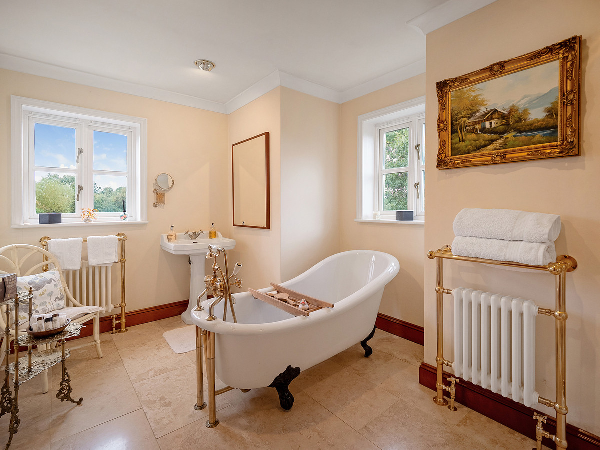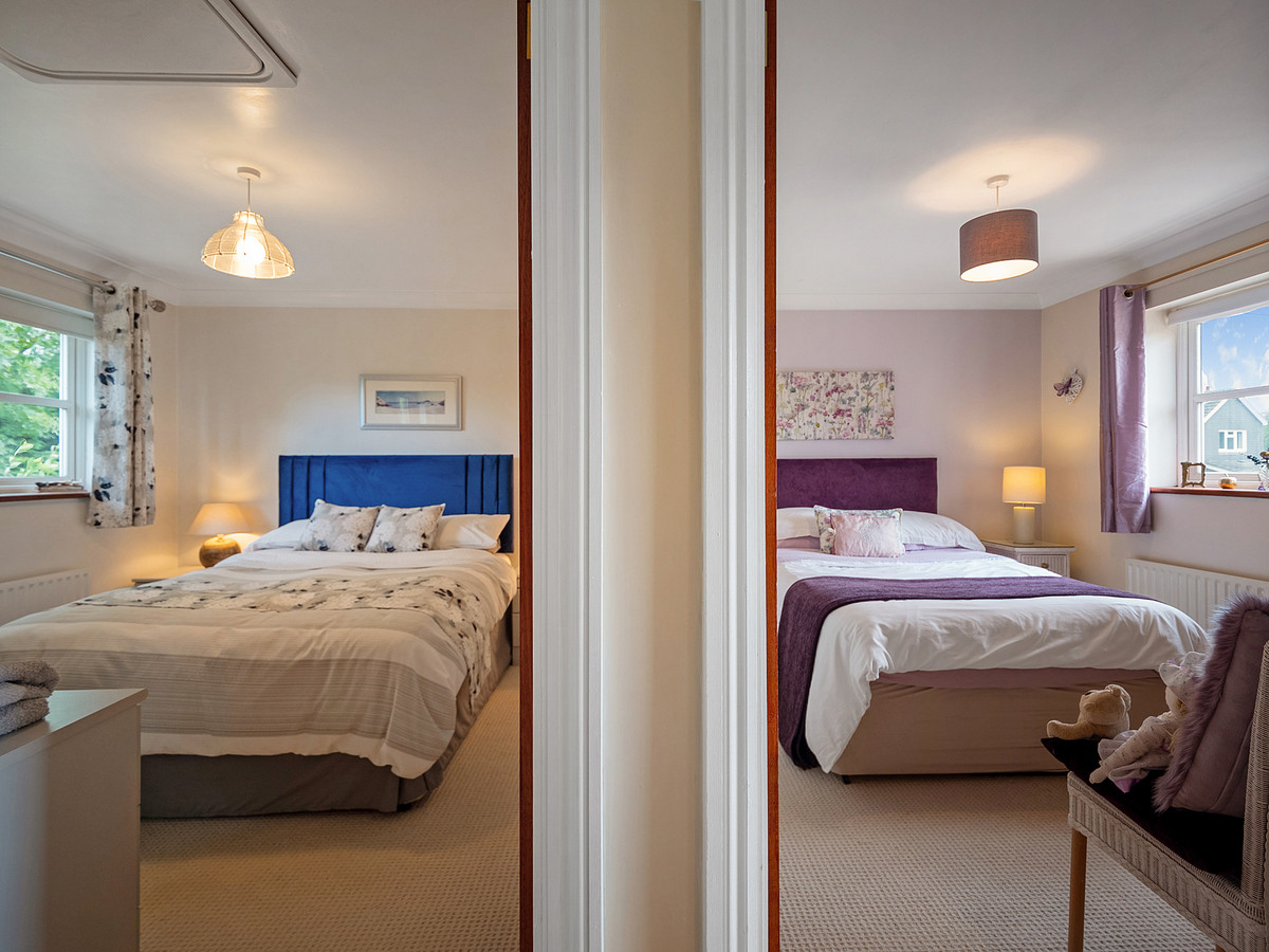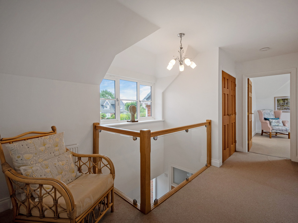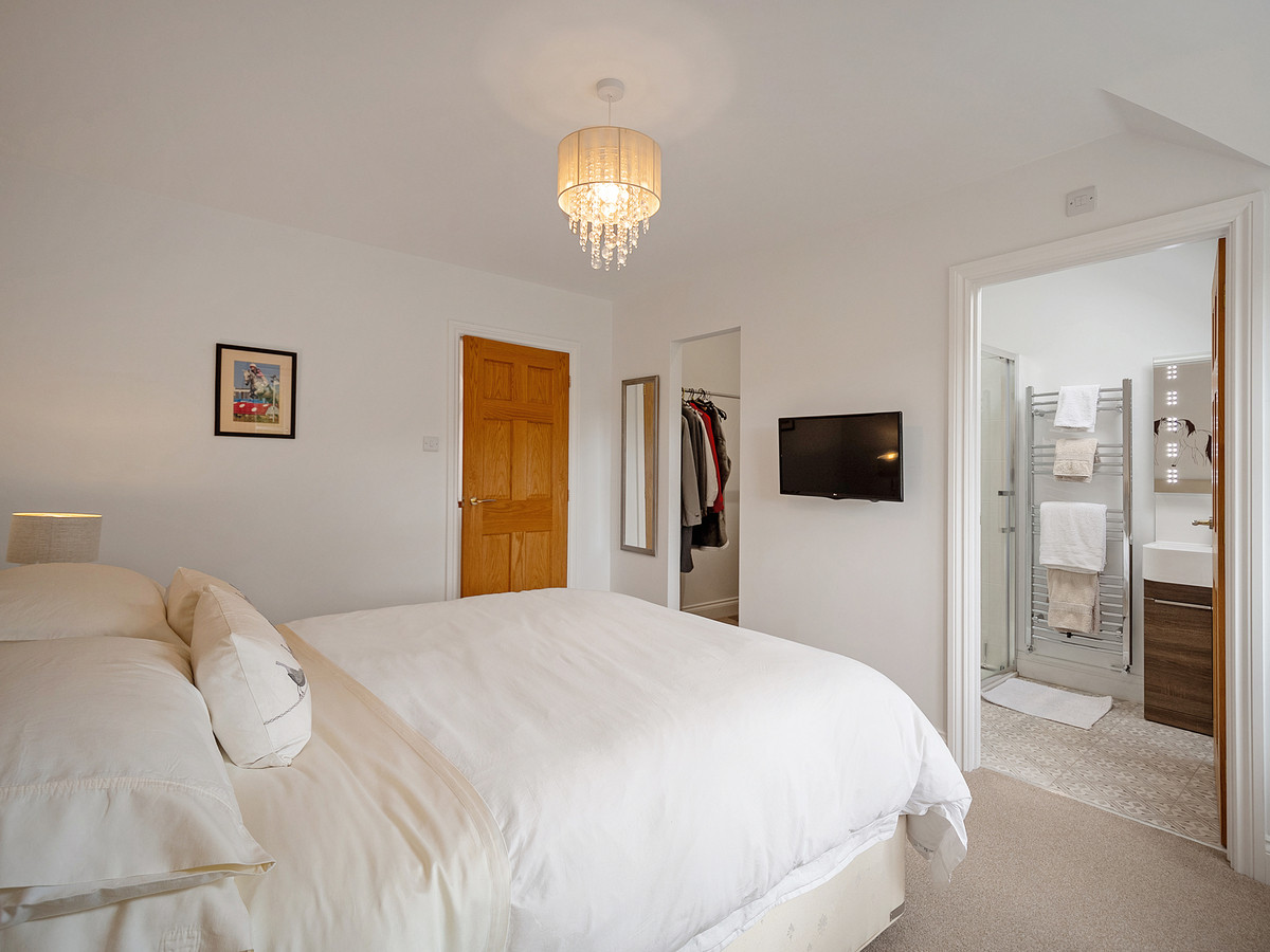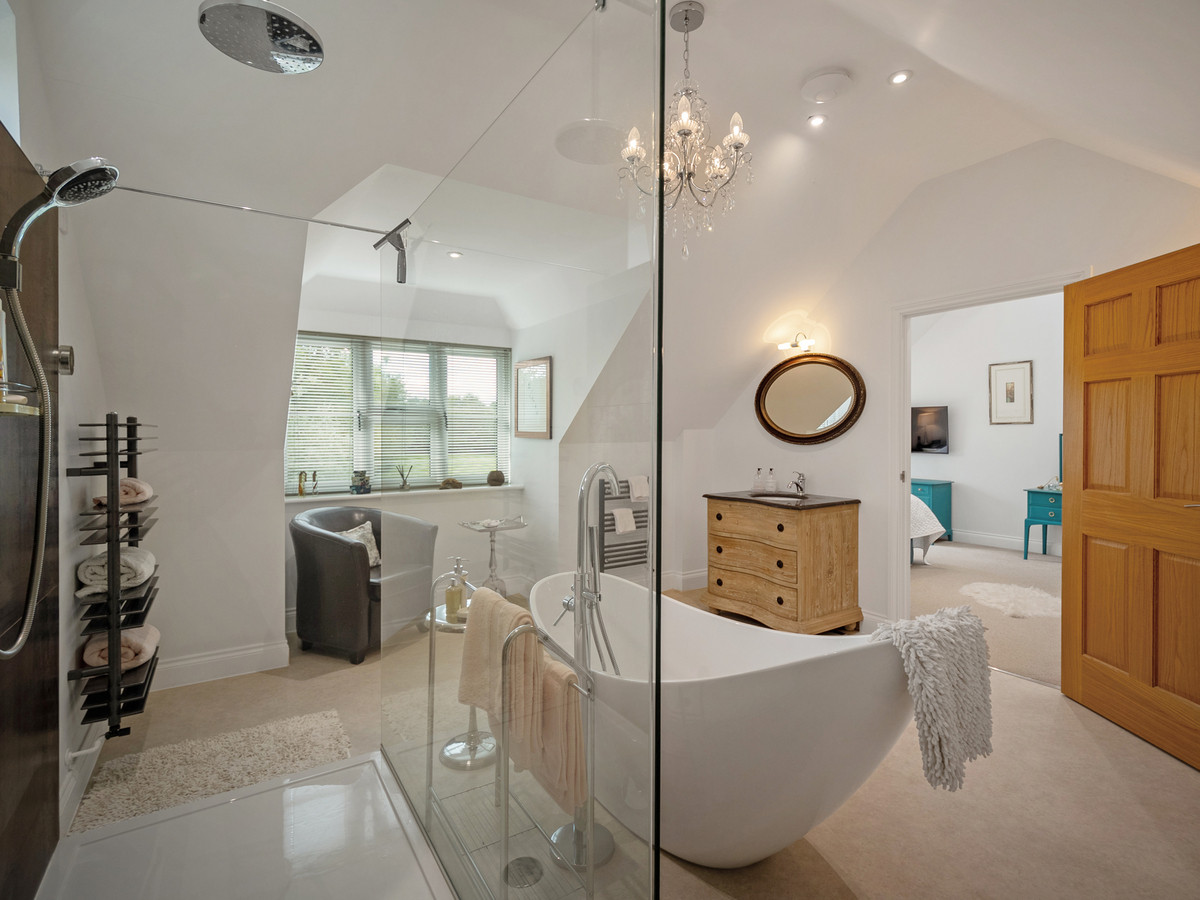 Halfway up the stairs, you'll find a charming apartment perfect for children or teenagers, featuring a lounge/games room, bathroom, and two king-size bedrooms. Bedroom 3 is an elegant king-size room with built-in wardrobes and an ensuite shower, offering a comfortable and private space. Bedroom 4, a grand super king-size room, boasts a walk-in wardrobe, an ensuite bathroom with a luxurious shower, tiled flooring, and Adelphi sanitary ware. Bedroom 5 is another spacious king-size room with an ensuite shower, Velux windows with rain sensors, and a walk-in wardrobe. The master bedroom is a stunning super king-size suite, featuring Velux windows with blackout blinds, breathtaking garden views, a dressing room, and an opulent ensuite bathroom with a shower and three heated towel rails. In total, the property boasts six spacious bedrooms, each thoughtfully designed for comfort and elegance.