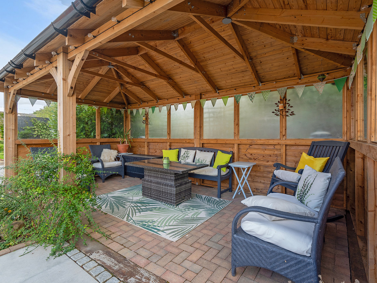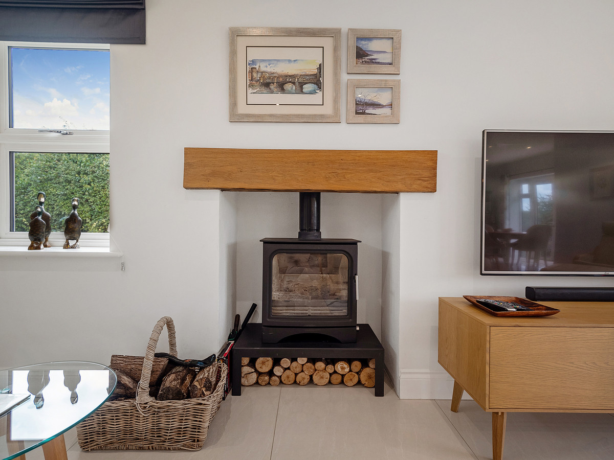 Scotsdale sits on a generous 1-acre plot, featuring a recently serviced sewage treatment plant, a sweeping front garden driveway with ample parking, and a garden that offers complete privacy. The garden is adorned with mature trees, including walnut, olive, and oak trees, and a serene pond. The decking area, with a wooden Gazebo equipped with power points and heating, provides an ideal space for outdoor relaxation. Several seating areas and a CCTV system with seven cameras ensure both comfort and security. A 2500L heating oil tank supports the property’s needs, while the double garage, with electric doors, adds convenience.