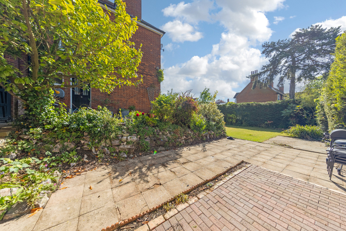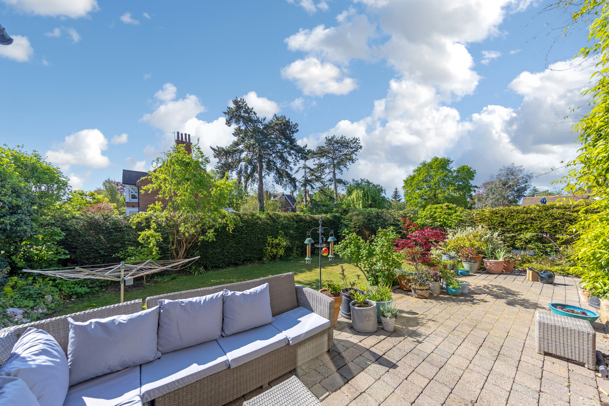 The south facing rear garden is an attractive, low-maintenance outdoor space with a paved patio area perfect for al fresco dining, a central lawn, and mature borders. It’s an ideal layout for families or those who enjoy entertaining outdoors. A gated driveway provides access to the garage with additional off-road parking for up to 3 vehicles. An EV charging point is installed on the garage wall. Mature hedging and fencing provide privacy and a pleasant backdrop year-round.