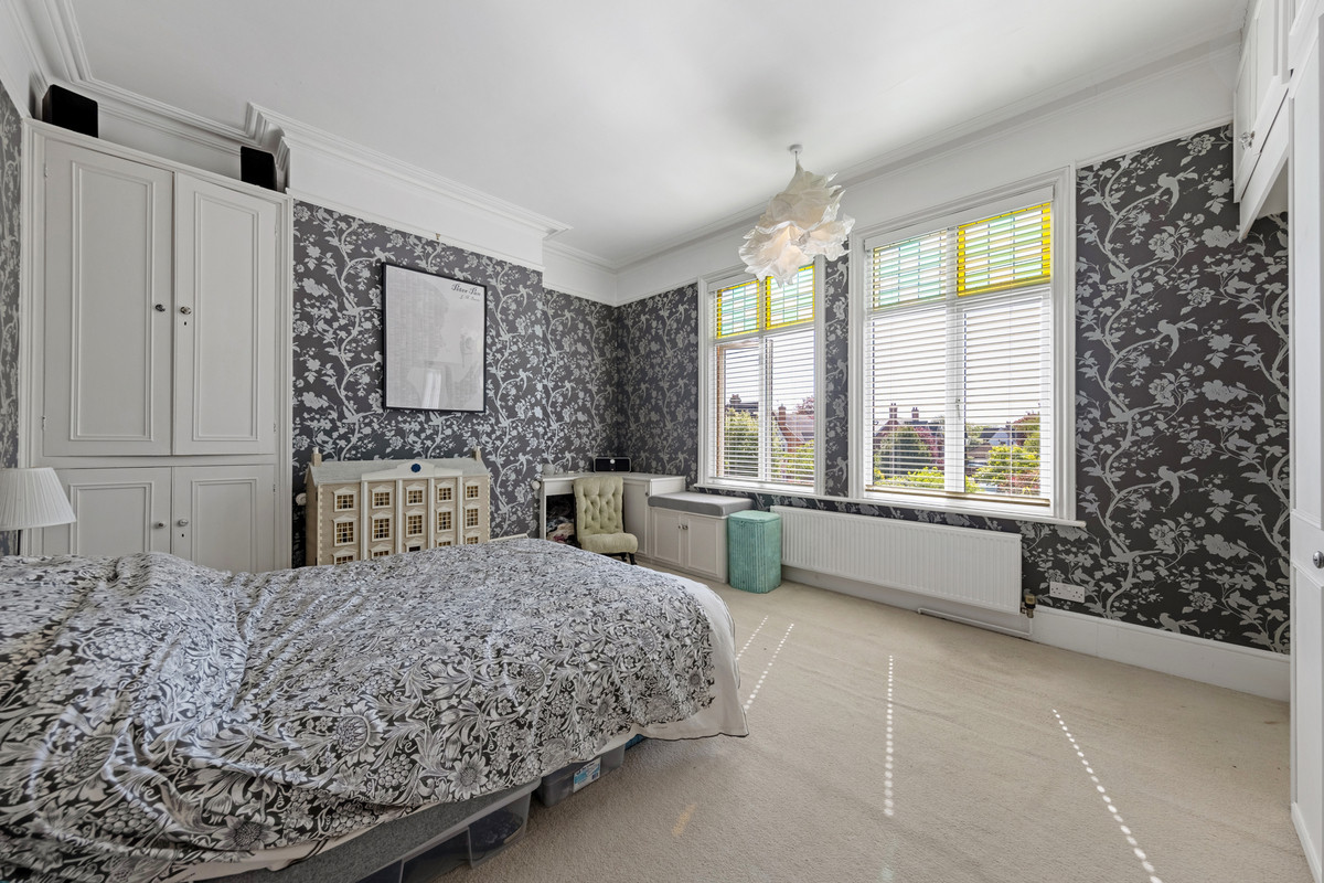 Upstairs, the property continues to impress with four well-proportioned double bedrooms on the first floor. The principal bedroom overlooks the park and benefits from excellent natural light, appointed with both an en-suite showroom and walk in dressing area. Three further doubles offer flexibility for family life, guests, or working from home. A family bathroom serves the floor.