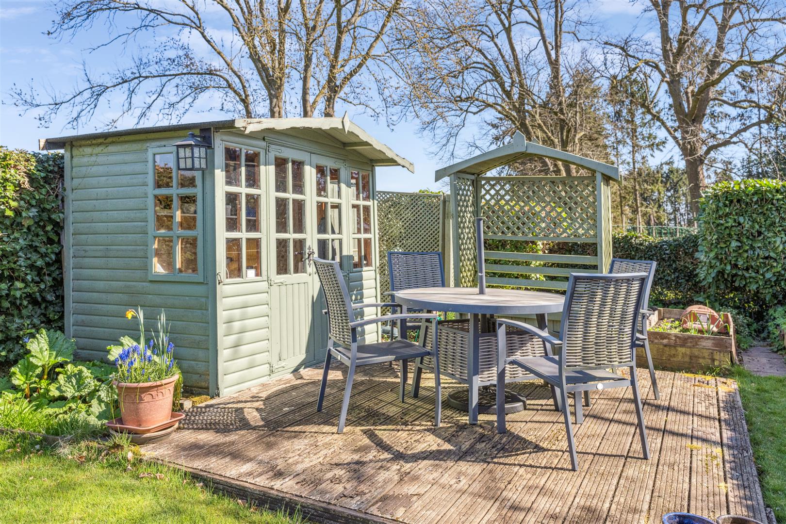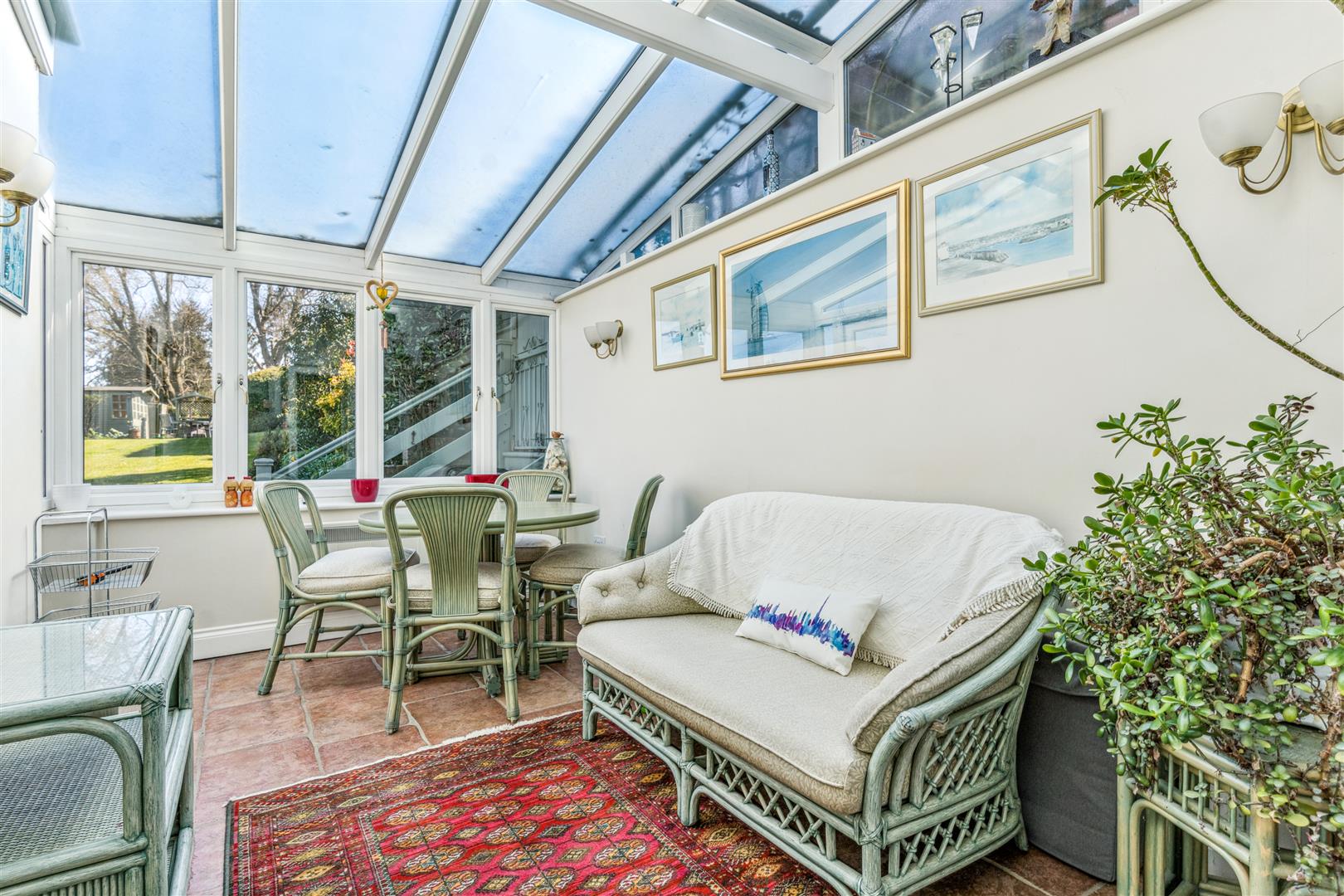 The entrance hall leads to the spacious dining room which provides a warm welcome with attractive wooden flooring and high ceilings. This room is conveniently open to the kitchen/breakfast room which has beautiful views over the garden and is well equipped with ample worktop space and units with integrated appliances and a handy breakfast bar area. A separate useful utility space provides additional storage. Adjoining the kitchen is a light and spacious conservatory with doors leading to the rear garden, which provides an ideal spot for morning tea. This room leads in turn through to the impressively proportioned sitting room with feature fireplace and large windows to the front aspect which flood the room with natural light. A cloakroom completes the downstairs accommodation. To the first floor the principal bedroom spans the full depth of the property and benefits breathtaking views across the garden and fields beyond. There is also ample fitted wardrobes and an en-suite shower room. The second bedroom to this floor is currently used as a study. Stairs rise to the second floor where there is a third double bedroom with fitted wardrobes and eaves storage which is serviced by a large bathroom across the split landing, which has built in cupboards and eaves storage. Outside the property is accessed via a pretty courtyard where there is also side access to the rear garden which is mainly to lawn with mature hedges and borders, leading to a sunny decked terrace with summer house and vegetable beds beyond. The property has the added benefit of a garage and additional private parking for 3 cars.