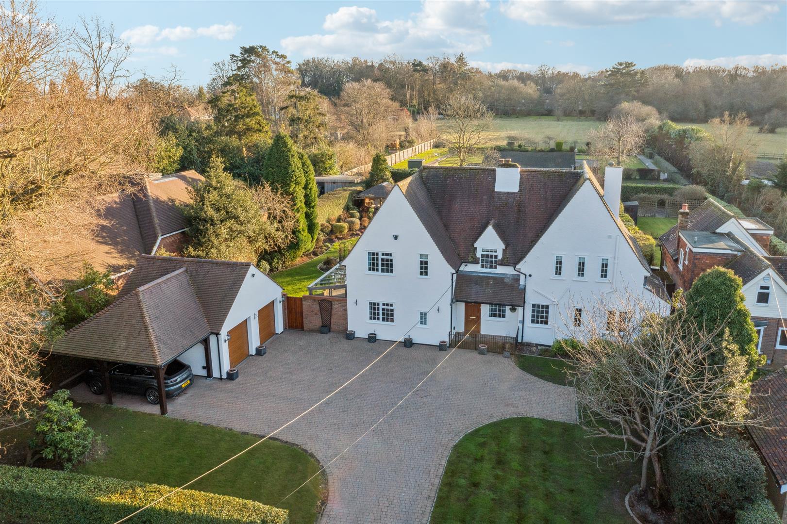 A wonderful family home which has been recently updated and improved by the current owners including; new windows, single storey extensions to the rear, new kitchen and car port to name a few. The property is situated perfectly on the plot providing excellent frontage for the double garage, car port and ample parking whilst also offering a generous southerly facing rear garden. The hallway leads through to all the principal reception rooms. The open plan kitchen/ family room is a fantastic space to entertain family and friends and has direct access onto a large terrace and the rear garden. The sitting room, which is cleverly split into two areas, also enjoys the benefit of views of the rear garden. To the front aspect there is the dining room and a study. Completing the ground floor accommodation, there is a utility room and cloakroom. On the first floor, the principal bedroom is en-suite. There is an additional en-suite double bedroom, two further double bedrooms, a single bedroom and family bathroom. Outside the garden has an extensive lawn with mature hedges and flower beds. To the front, the property has electric gates leading to the double garage and car port.