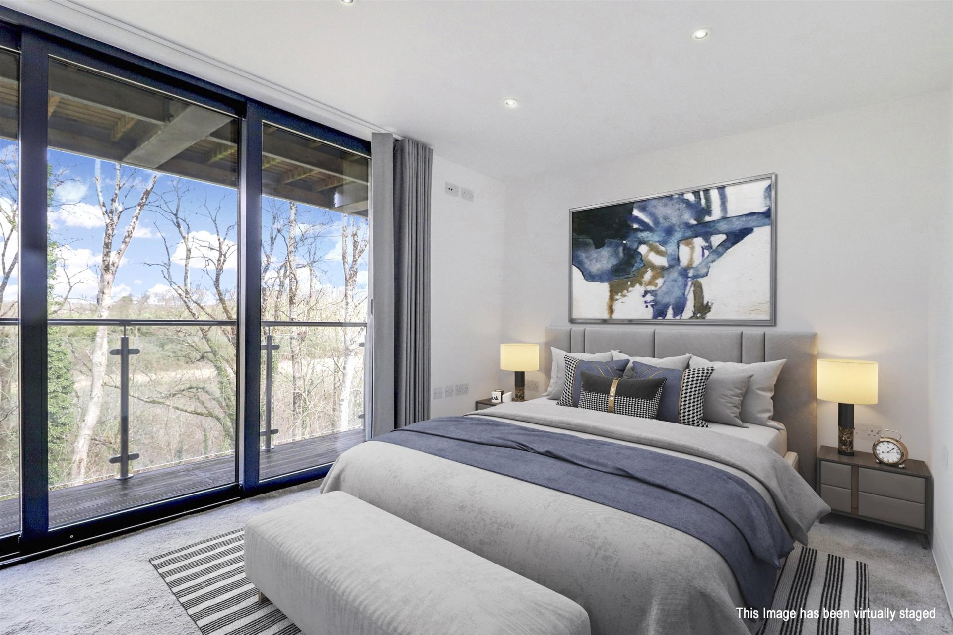 The master bedroom has a large walk in wardrobe and a bathroom with double ended bath as well as floor to ceiling sliding doors leading out to a balcony with woodland views. The adjacent bedroom also has access to a balcony with a similar aspect. The two other bedrooms at the rear, have access to a full width south facing balcony.