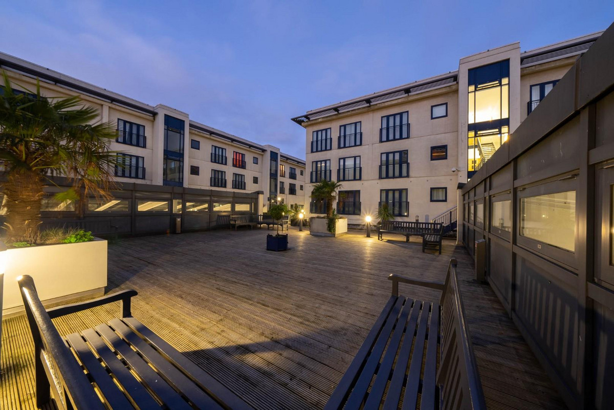 - Large outdoor terrace overlooking the iconic Cube building