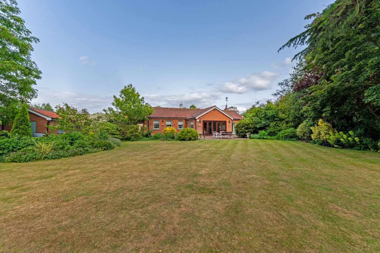 This deceptively spacious and unique detached single story 3/4 bedroom residence offers flexible living accommodation, situated on the desirable Shortgrove Estate on the outskirts of Saffron Walden, surrounded by rolling countryside. The property boasts in excess of 3000, sq ft with an expansive lounge and dining area, a lovely garden room offering stunning views over the rear garden and a further reception room to the front. There is a fully fitted bespoke kitchen/breakfast room, as well as a very good sized utility room. The principal bedroom is extremely spacious and has en-suite shower room, there are 2 further double bedrooms and a family bathroom. Sitting on a very private beautifully landscaped plot with parking for numerous vehicles.