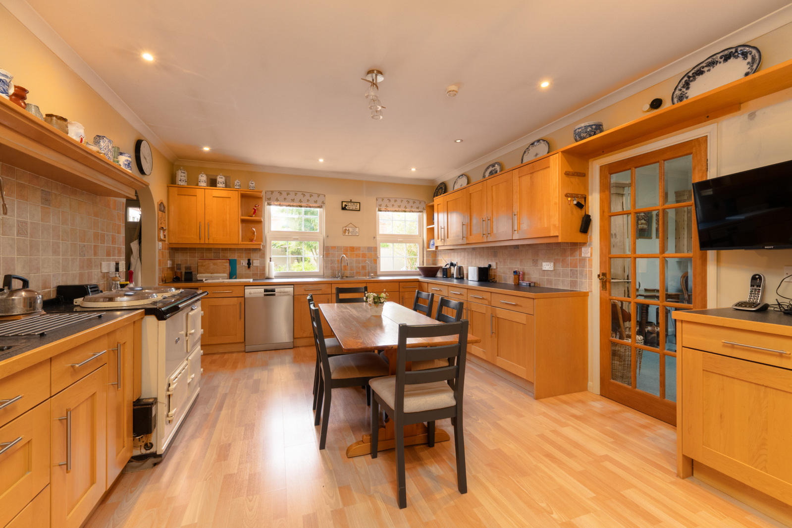 The Accommodation A solid wooden door opens onto a spacious and bright entrance hallway with inner hall area opening into a generous bright lounge with dining room and French doors opening onto the rear patio. From the Lounge a door opens into a further reception/tv room and the lovely garden room is accessed via further French doors. The dining area has a window view into the garden room and a door leads from this end of the room into t he expansive principal bedroom with fitted wardrobes and ensuite shower room. The bespoke fully fitted Kitchen is in the centre of the property and boasts a good range of base and wall units and an aga stove. There is ample space for a dining table and chairs. From the kitchen there is access to a further hallway with fitted shelving unit and doors leading to a large utility/boot room giving access to the rear garden. The hallway leads to a further 2 double bedrooms with fitted wardrobes and windows to the front and a family bathroom. There is a separate WC off the main inner hall.