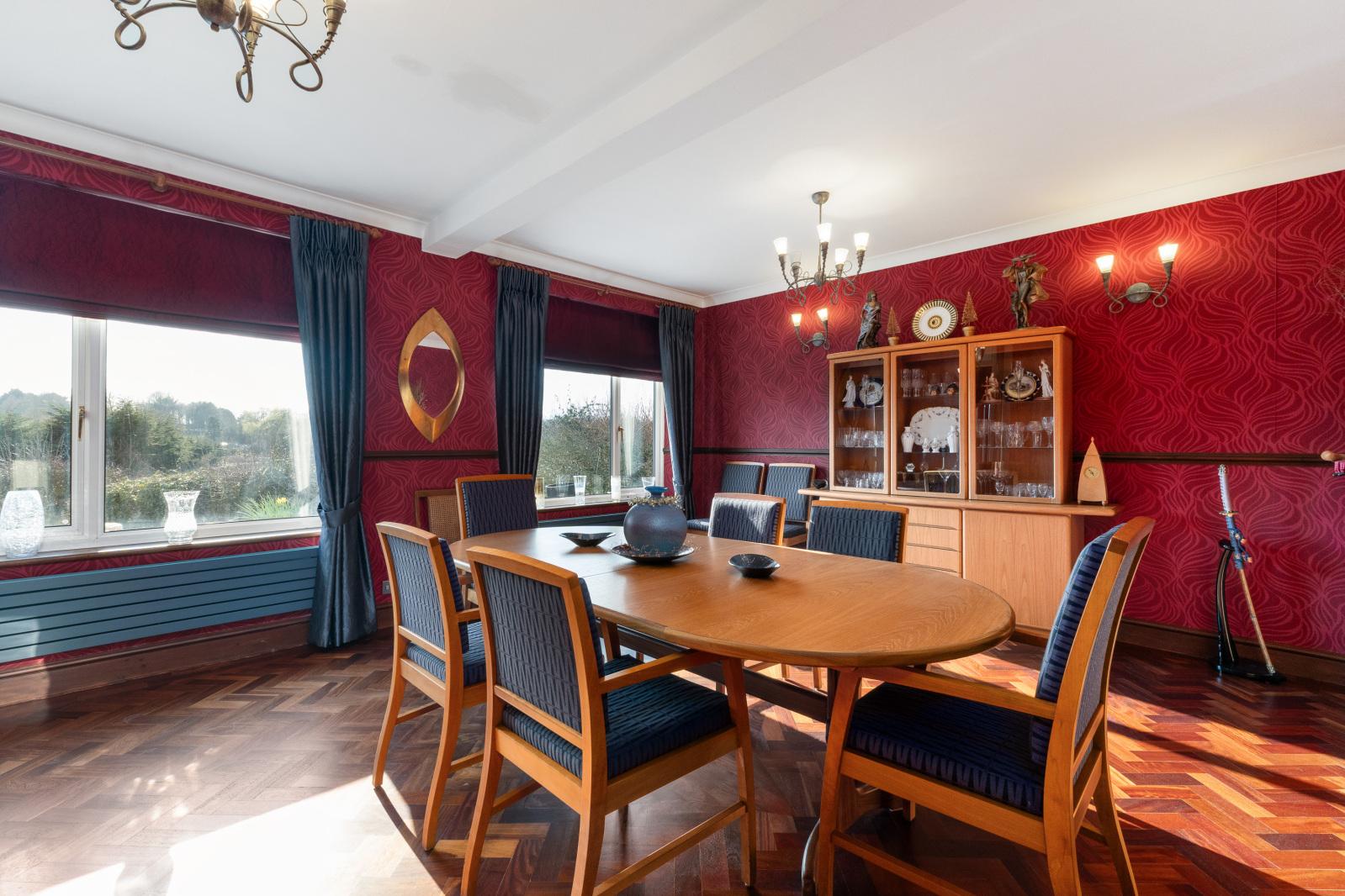 The Accommodation A part-glazed front door opens onto a very spacious entrance hallway with tiled flooring, a turned staircase to the first floor and further double opening doors leading off to a lovely, south facing bright, dual aspect sitting room with feature fireplace and inset wood-burner and Parquet wood flooring. To the right of the hallway is a study/office with window to the front and external door to the garden. The formal dining room is situated to the rear of the property and offers the most amazing views over rolling countryside. A state of the art glass lift I has been fitted in the dining room which gives access to the principal bedroom suite. The spacious kitchen/breakfast room has been fitted with a good range of bespoke solid wood wall and base units with contrasting granite worksurfaces, integrated appliances, central island with breakfast bar there are also French doors opening onto the rear patio area. There is a separate utility room, and ground floor double bedroom and shower room that completes this floor.