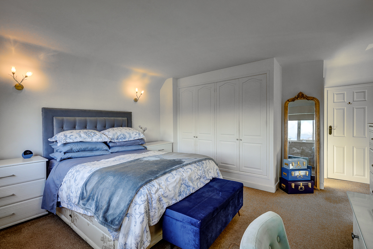 The former integral double garage has been cleverly converted into a large dining room, creating a wonderful entertaining space with a prominent front-facing window. The ground floor also features a versatile bedroom with its own WC and wash basin, a modern family bathroom, and two bright and inviting living rooms, each benefiting from large, glazed areas that enhance the sense of space and light. This layout makes the home ideal for multi-generational living. On the first floor, four bedrooms plus a study provide ample accommodation. The principal bedroom has built-in wardrobes and a modern ensuite.