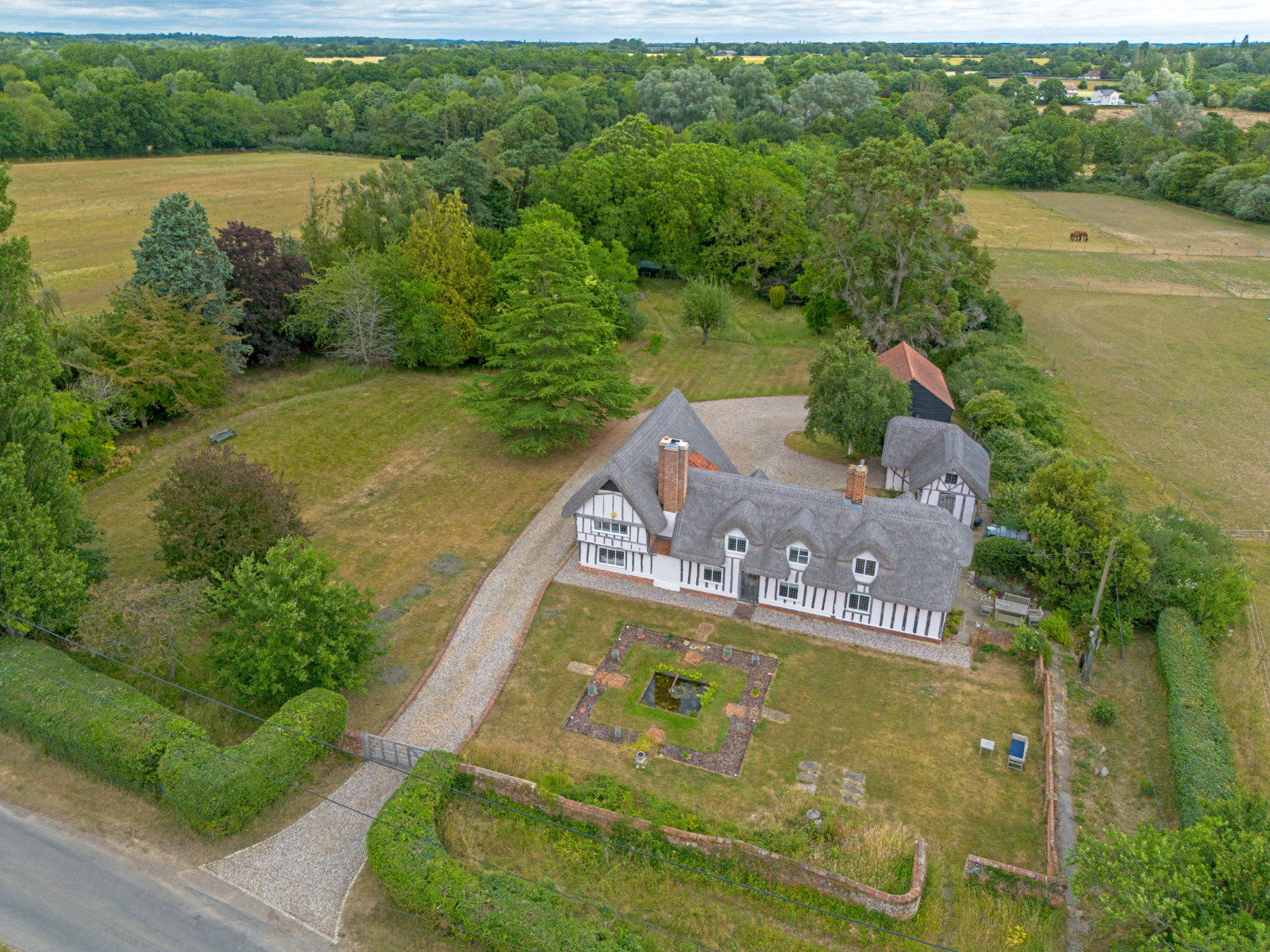 This beautiful Grade II Listed detached, thatched property dates to the 1500s and retains many original period features, including exposed timbers to walls and ceilings, beautiful Inglenook fireplace, wood flooring. The property has remained in the same family since 1934. This fabulous property offers living accommodation in excess of 2600 sq ft, comprising 4 reception rooms, a ground floor shower room, kitchen/breakfast room and 5 double bedrooms to the first floor, accessed by 2 staircases. The property sits on a private plot approaching 2.5 acres of formal lawned gardens and woodland with a detached 2-bay cart lodge and garage with gym facilities and a further detached thatched storage outbuilding. There is a sweeping gravel driveway for numerous vehicles. EPC Rating Exempt.