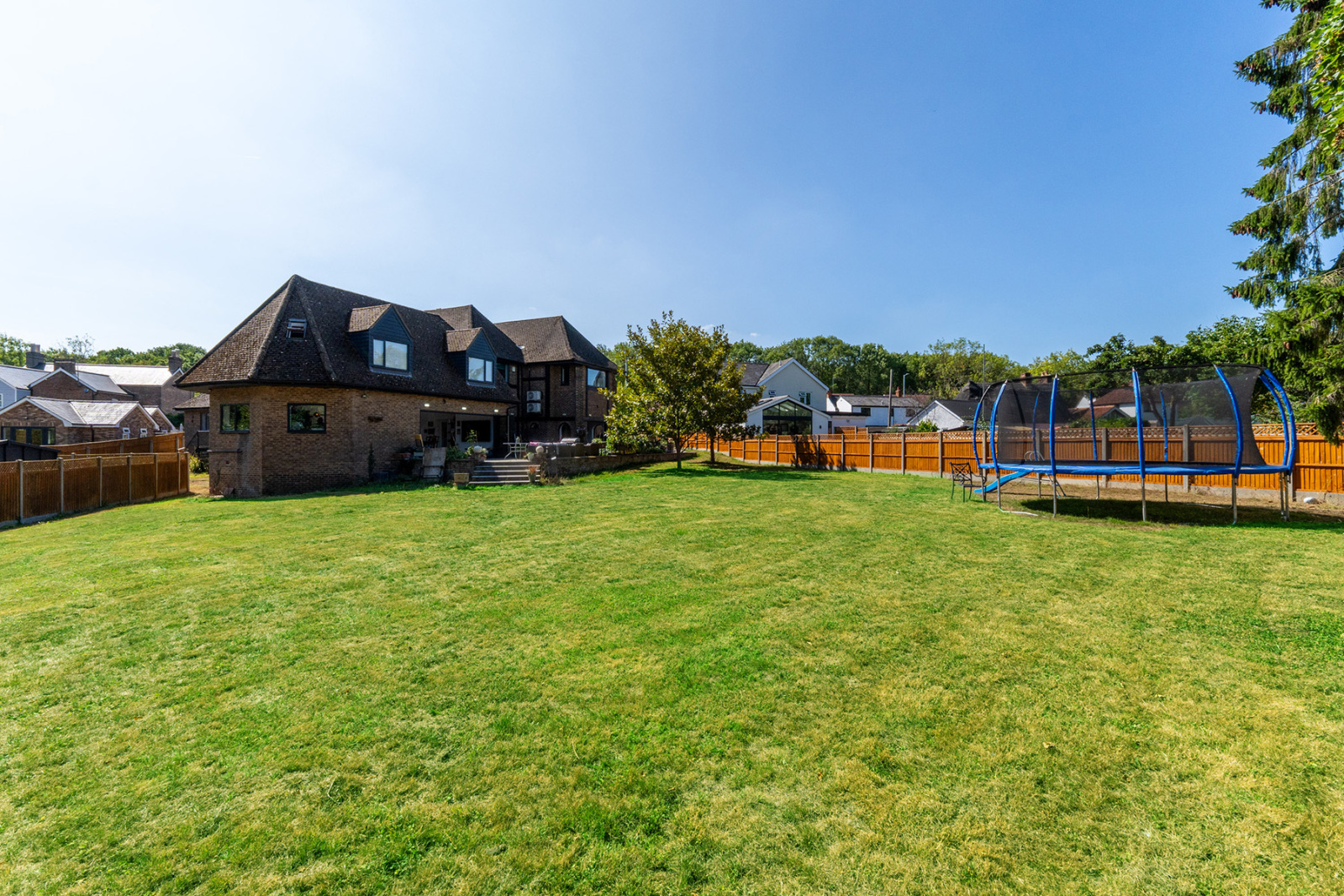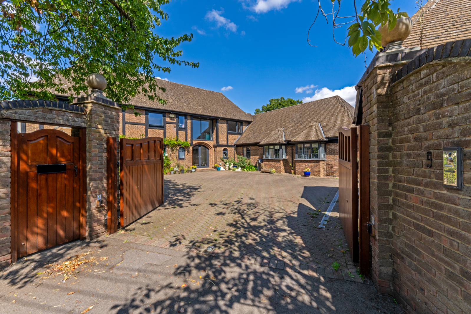 Outside Set on a private plot accessed via electric gates, the property benefits from a sweeping driveway and extensive garaging, providing both security and convenience. The rear garden is both private and generous in size, predominantly laid to lawn with a large patio area perfect for entertaining.