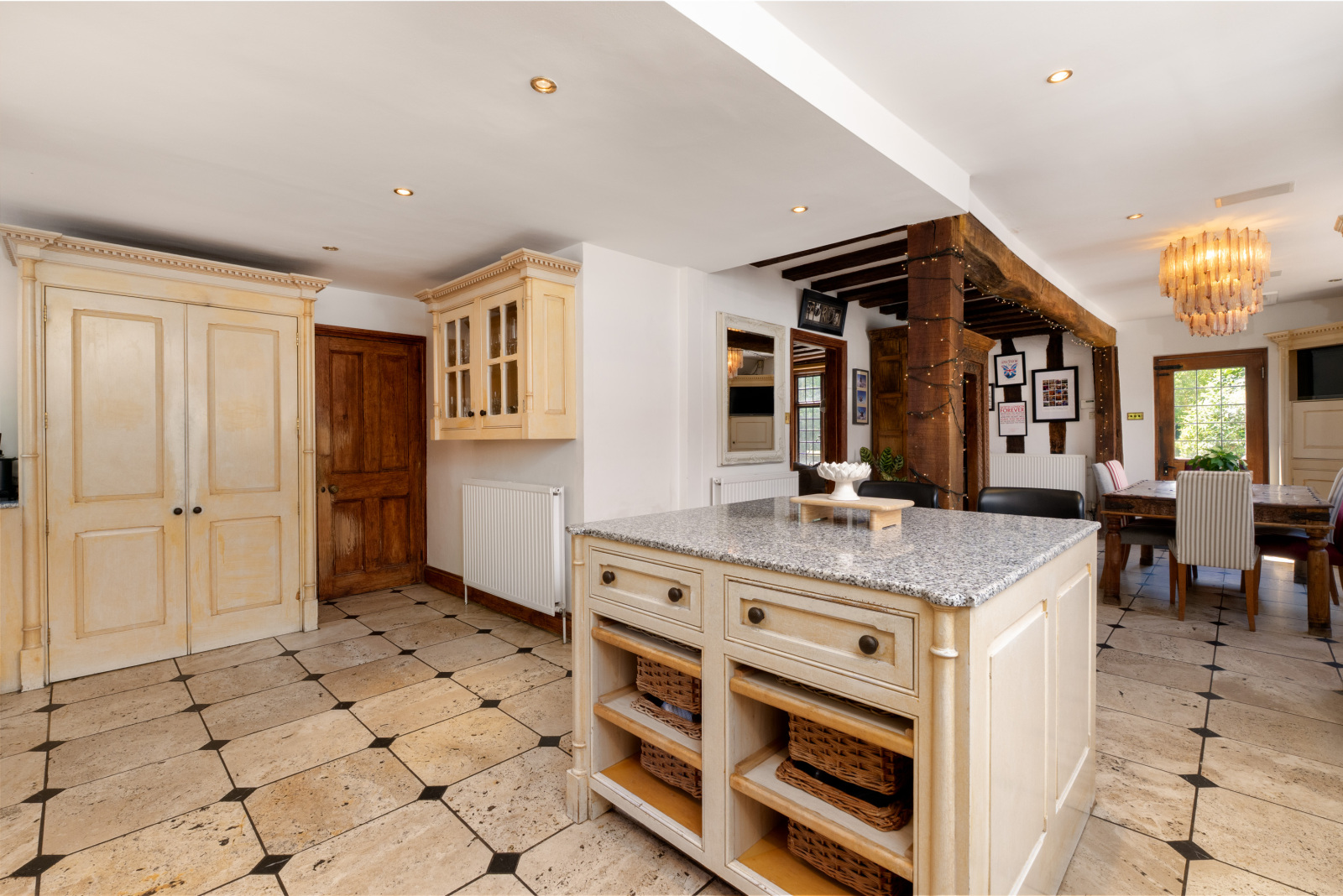 Ground Floor Accommodation The main front door to the property opens onto a generous entrance hallway with wooden flooring and an oak staircase rising to the first floor and galleried landing. Doors from the hallway open onto the various reception rooms. The family room to the left, has fabulous views over the front aspect, wood flooring and a large Inglenook fireplace with wood burner and a further door that leads to the kitchen/dining area. The main sitting room is placed to the right of the entrance hallway with exposed timbers to the ceiling, a stunning ornate stone fireplace with inset wood burner and French doors to the side patio and garden. A further library/snug has built-in bookcases and storage cupboards with a large window overlooking the front garden. The kitchen/breakfast/dining room has been fitted with a good range of bespoke wall and base units with granite worksurfaces and a large island with breakfast bar. There is an external door to and windows overlooking the courtyard to the side and rear. A rear hallway from the kitchen leads to a large shower room and study and a second staircase rises to 2 of the double bedrooms which completes this floor.