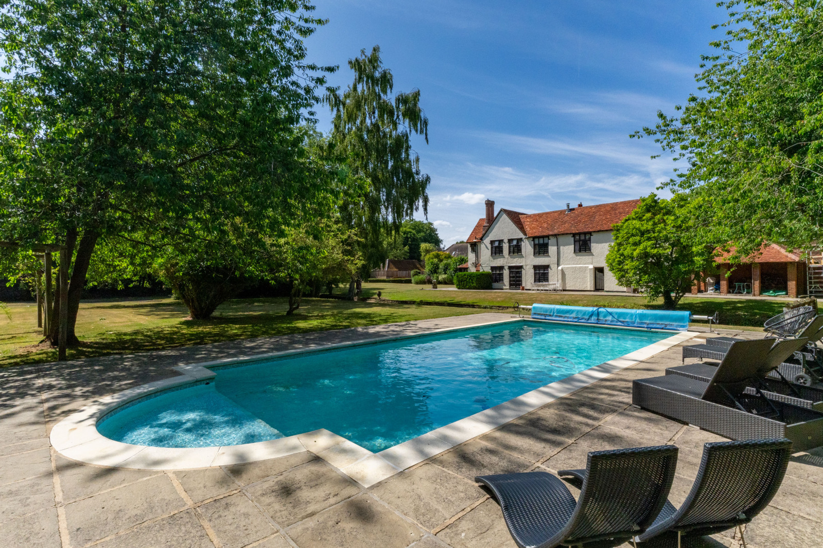 This superb, detached country residence sits on a private gated plot of approximately 3 acres. The property is Grade II Listed with an abundance of period features, including exposed timbers, Inglenook and ornate fireplaces. There are 4 reception rooms, a fabulous kitchen/breakfast room, downstairs shower room. The first floor offers a principal bedroom with large en-suite bathroom and a further 6 double bedrooms and family bathroom. There are several detached outbuildings, including a large games room with the potential for annex facilities, a gym and a detached double garage with adjoining utility room. Within the formal gardens is a heated swimming pool and a large natural pond with stream and additionally there is driveway parking for numerous vehicles. EPC Exempt.