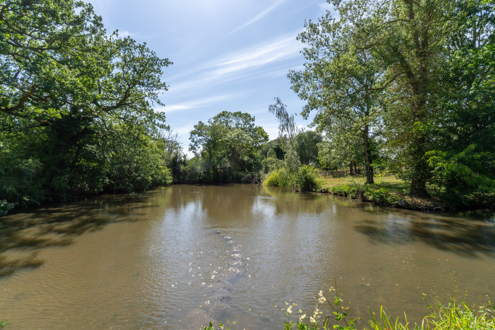 The private gardens approaching 3 acres surround the property with various terraces for entertaining, and, the remainder are predominantly laid to lawn with mature trees and shrubs and there is a stream that divides the house from the heated swimming pool and pool house with shower facilities, making the pool area extremely private. There is also a large natural pond to the front perimeter of the property.