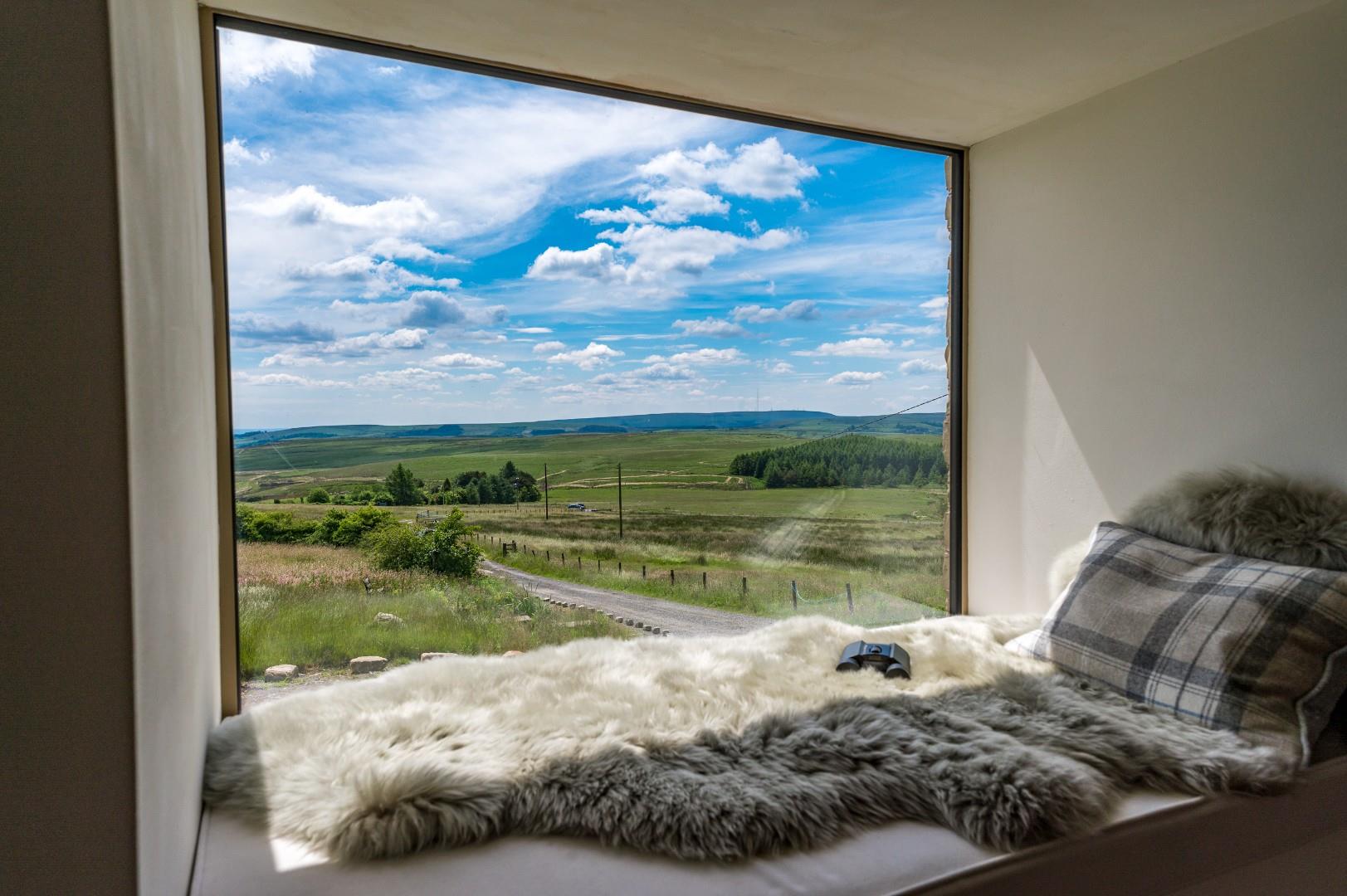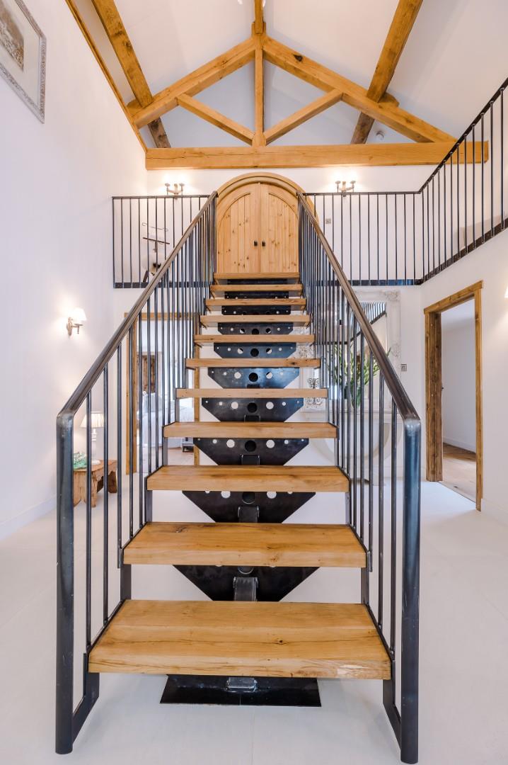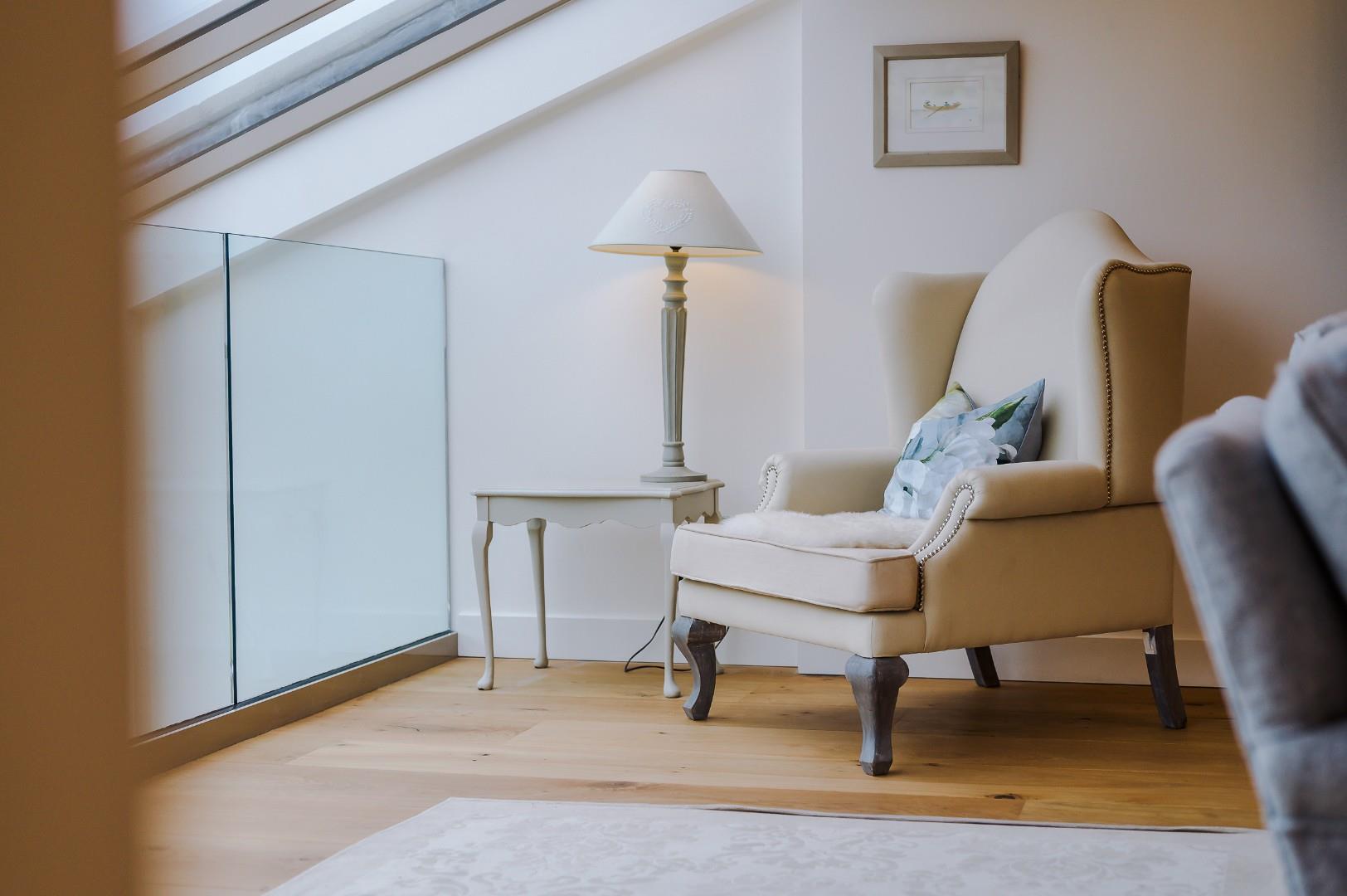 The Evening Quarters - The staircase is sure to attract a few glances as your attention is drawn up the oak and iron steps and towards the impressive oak trusses hanging their chandeliers beneath. Once you have reached the top you will note the wide wooden oak planks you have the pleasure of treading on as you follow them through to your evening lounge. Which spot do you fancy lazing in this evening? Are you drawn to the faux fur lined window seat to grab a pair of binoculars and spot the woodland wildlife and Darwen tower in the distance? Or perhaps you fancy sitting at the glass mezzanine in the reading nook looking over the gardens? If you have guests then the plush sofas surrounding the contemporary log burner would be the obvious choice, toasty warm you can share your tales over a mug of Gluhwein!