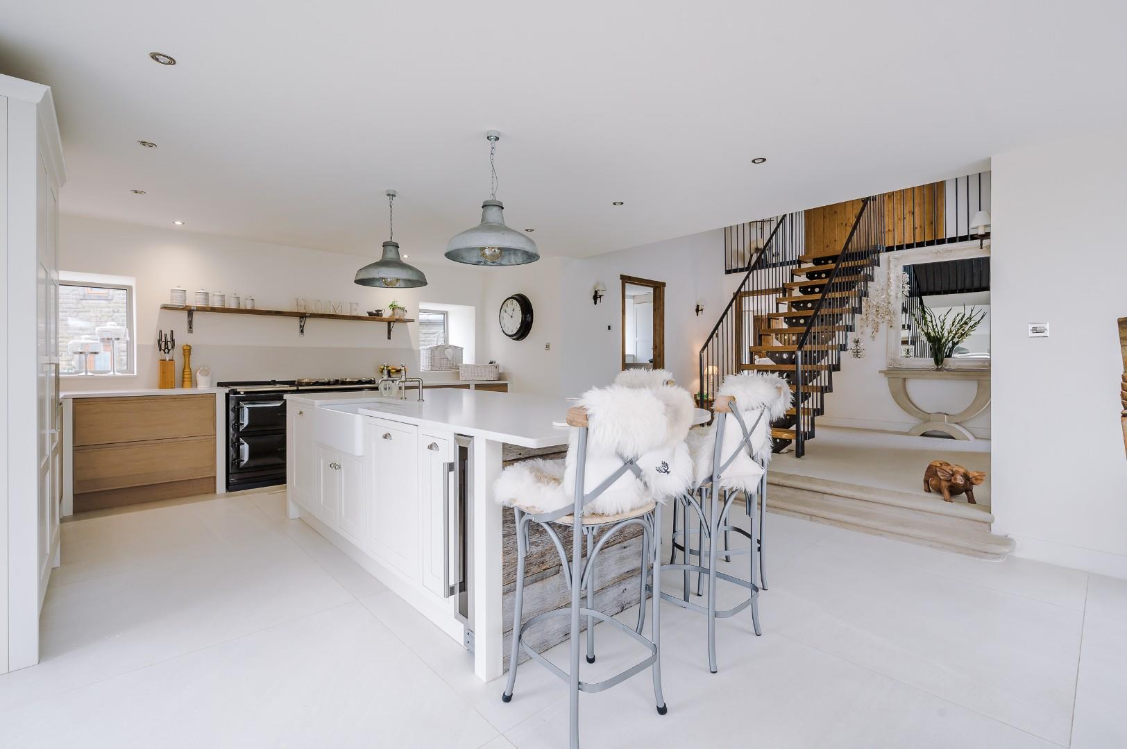 A Delight For Your Senses - The kitchen is a smorgasbord of high end materials and appliances, 'Nest Kitchens of Harrogate' made sure of that. There is ample storage within the deep white oak drawers and white cabinets, open up the double door pantry and discover your coffee making zone, all lit up with your mugs and cups and coffee machine bubbling and brewing away. Grab your comfort food out of the integrated double fridge and fire up the 'Total Control Aga', your guests enjoyably waiting to dine on the seating at the island, a glass of wine in hand perfectly chilled from the wine fridge. Pop your pots and pans in the Siemens dishwasher, the kitchen is so easy to work with.