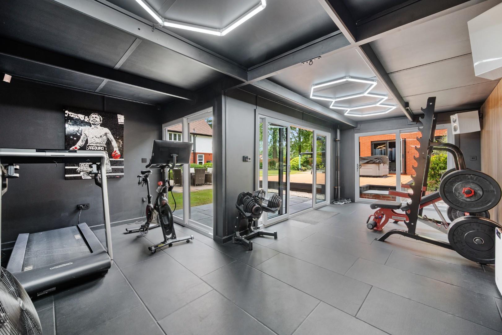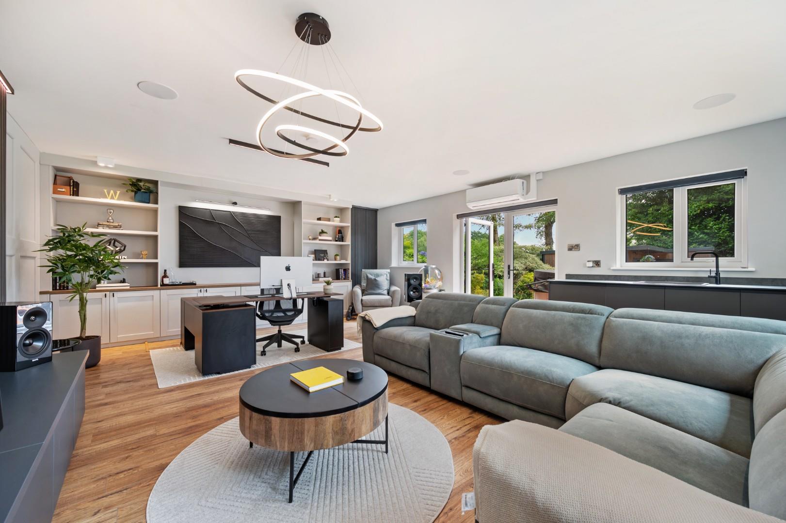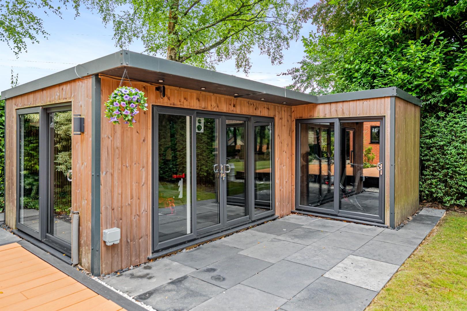 As well as the Gym, Woodside boasts another building which is split into two halves - one half comprising a double garage with EV charging facility, and the other half has just been fitted out as luxurious executive office and all singing and dancing cinema / media room, a real gem for adults & kids alike . Alternatively, like the gym this large space is versatile in its usage. The garage and Cinema / executive office building holds excellent potential for conversion to an annex (subject to planning), with plenty of space for a substantial bungalow.