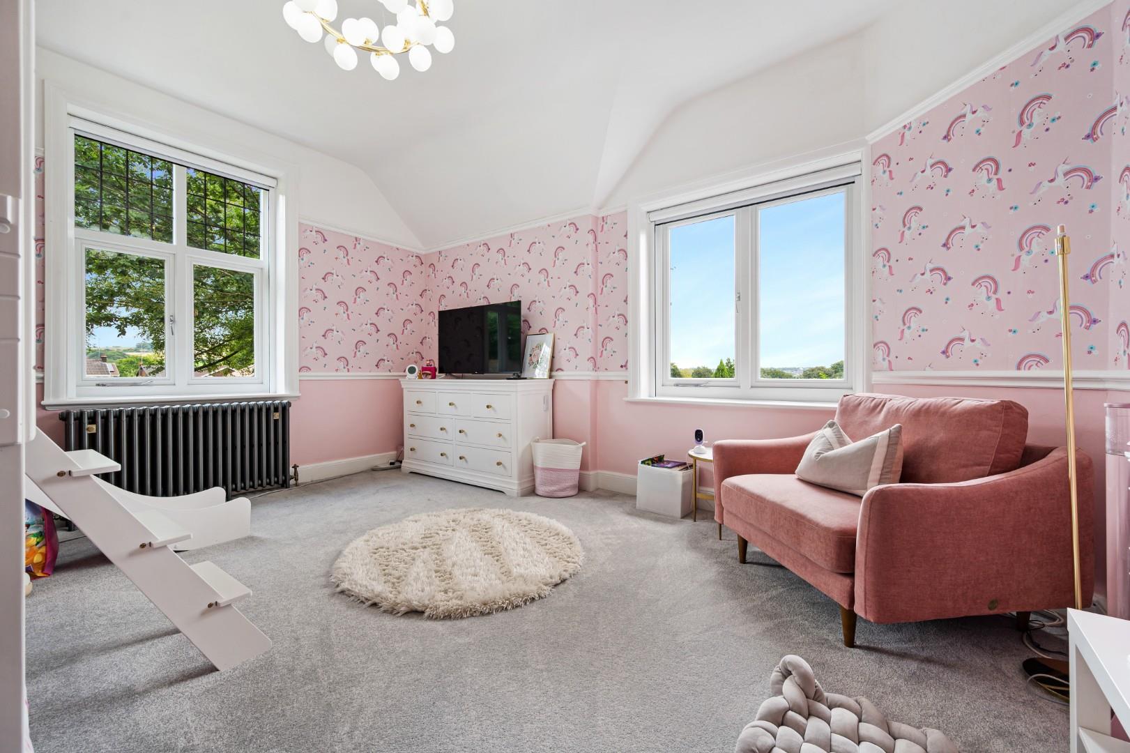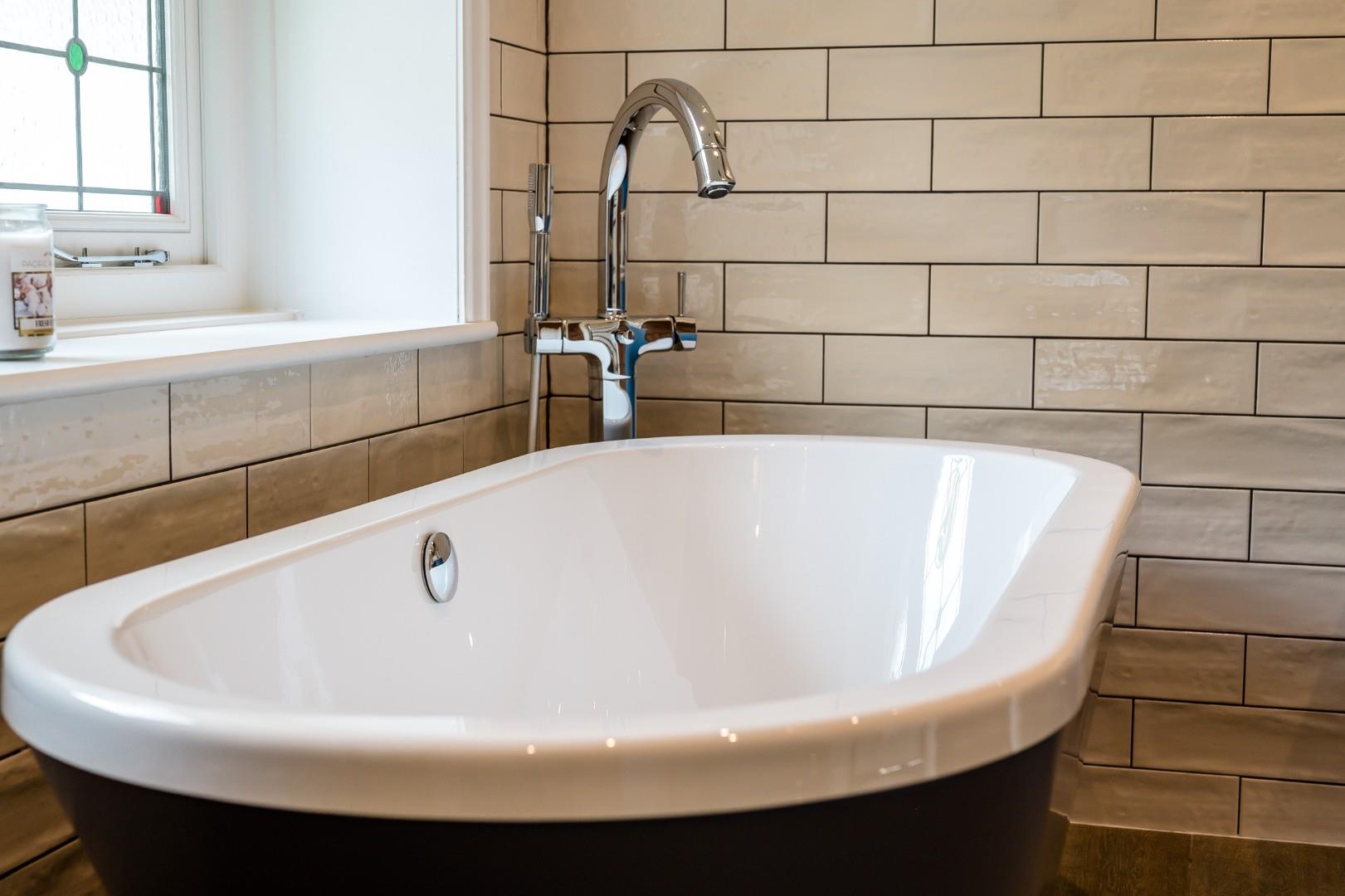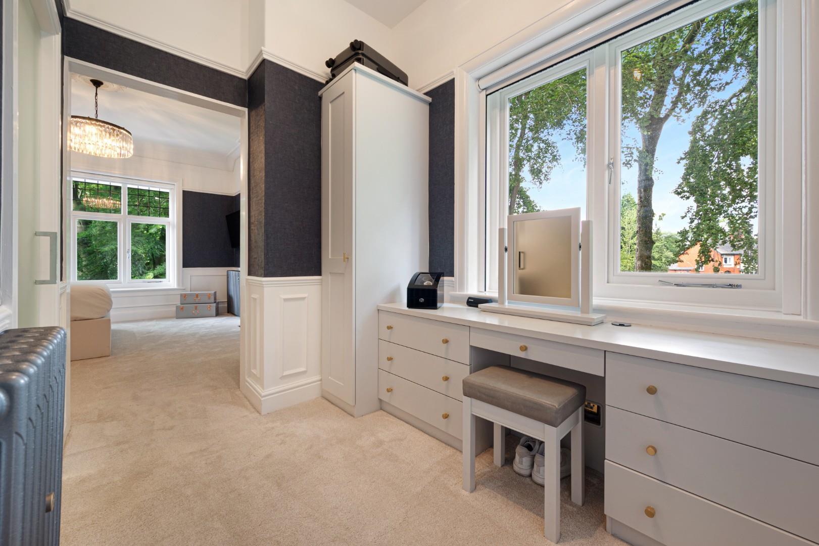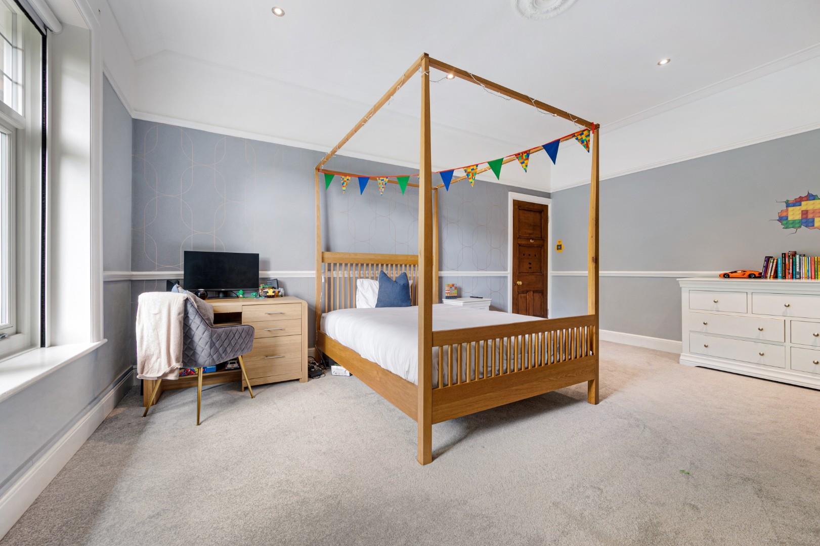 The master bedroom boasts a generous footprint with a spacious dressing room and walk-in wardrobe, in addition to a three-piece shower en-suite. Each of the three other bedrooms are also great sized doubles, and the family bathroom features a four-piece suite including a freestanding tub, walk-in shower, WC and wash basin with integral storage. Trendy metro tiles line the walls in the bathroom and complement the modern LVT floor, while the stained and leaded window gives a nod to the property's heritage.