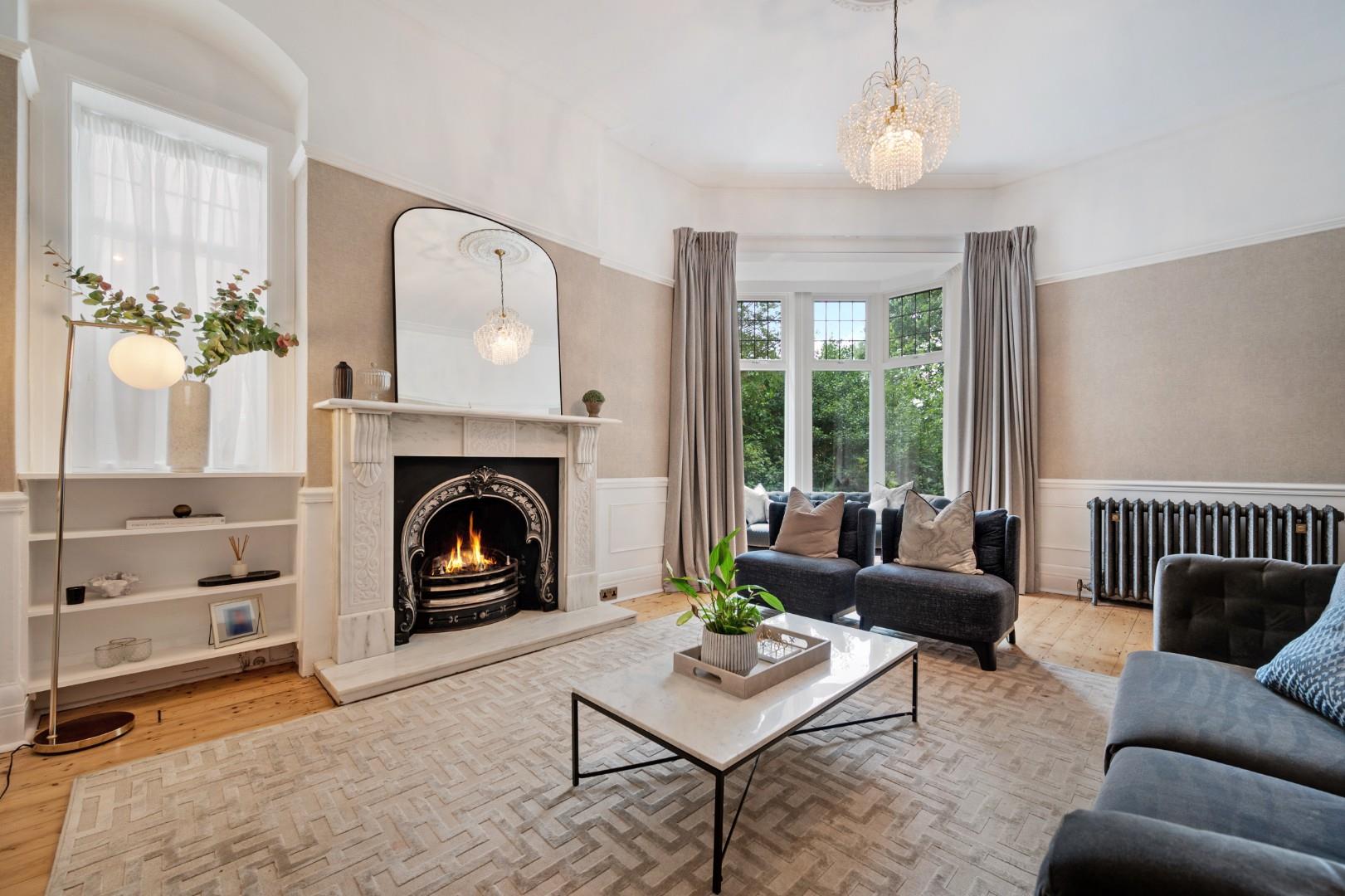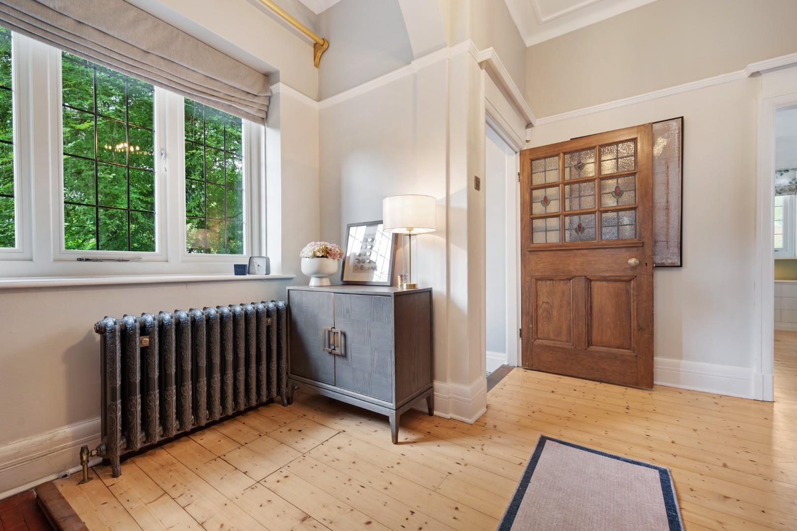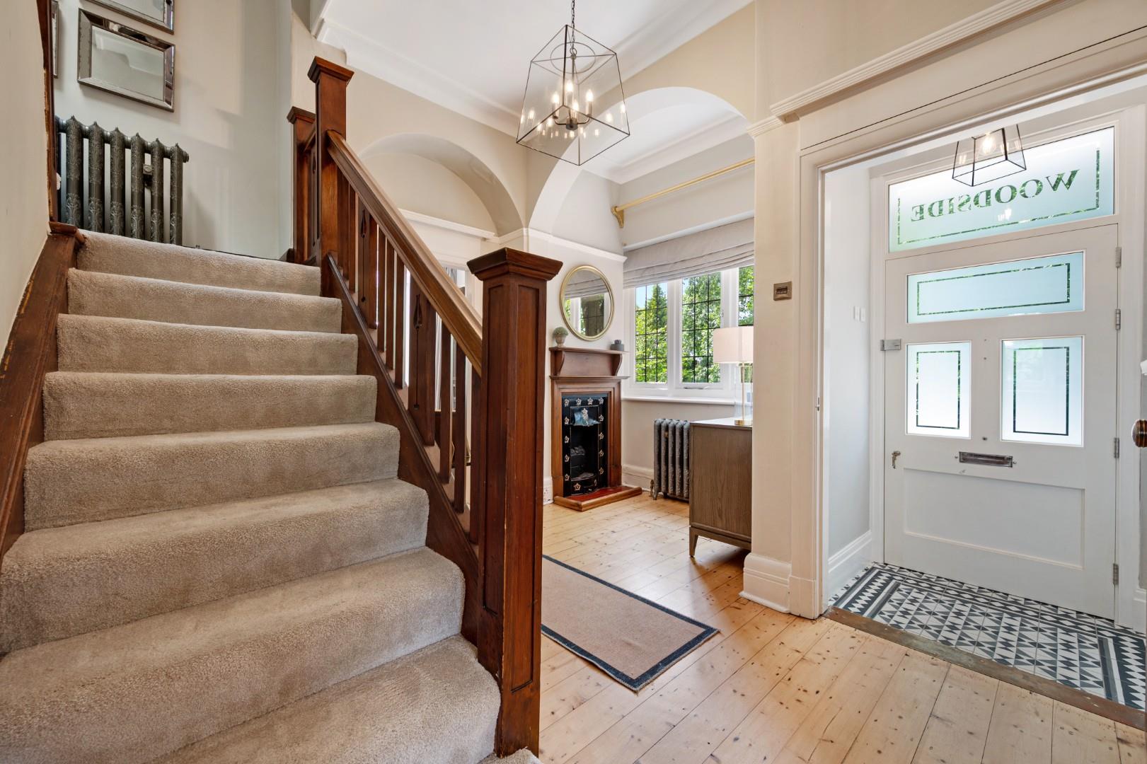 Grand Entrance - From the new bespoke front door through an entrance vestibule and you're welcomed into an impressive hallway where a bespoke solid wood staircase and high ceiling are the first glimpse of the beautiful character on offer. And the original feature fireplace in the hallway is the first of many to be seen in near enough every room!