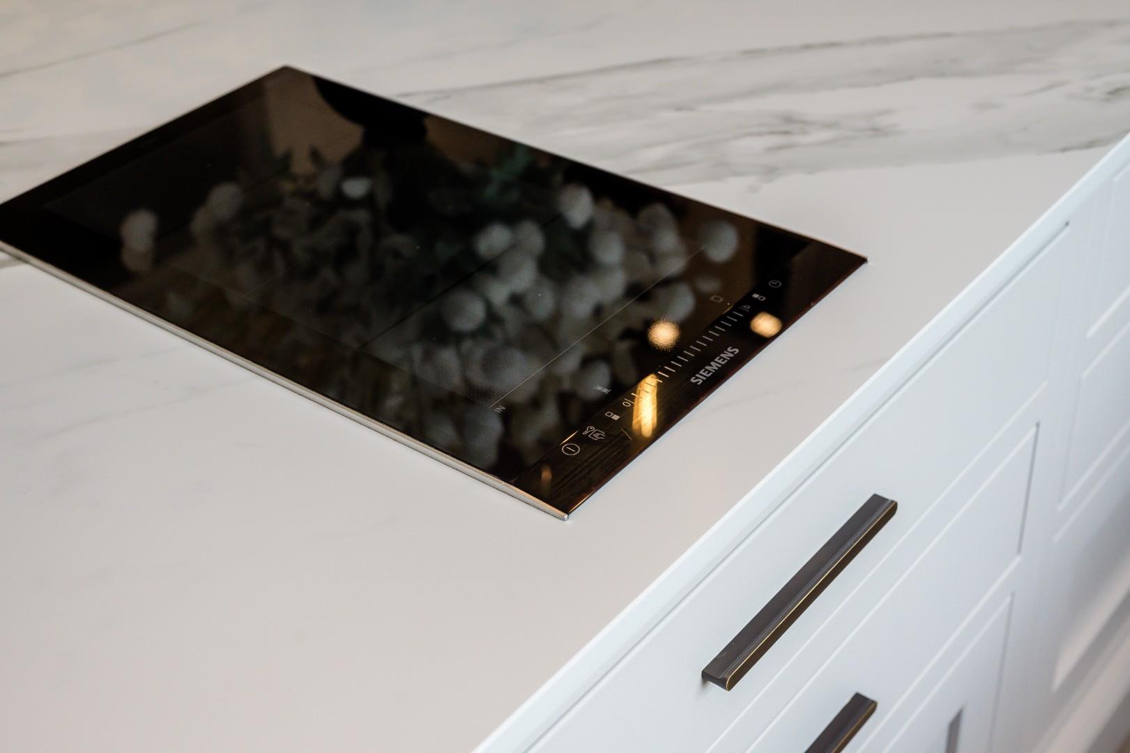 The kitchen itself is top-quality with a bespoke design of in-frame shaker style units, plus all the top-quality integrated appliances you'd ever need, including a Caple double basin sink with complementary swan-neck Quooker tap, Siemens smart oven, Siemens countertop induction hob, traditional Aga with hot plates and ovens, dual-aspect dishwasher, and a freestanding American-style Fisher & Paykel fridge-freezer which is included in the sale. Marble-effect Dekton worktops add to the contemporary style while ensuring the robustness required for family life.