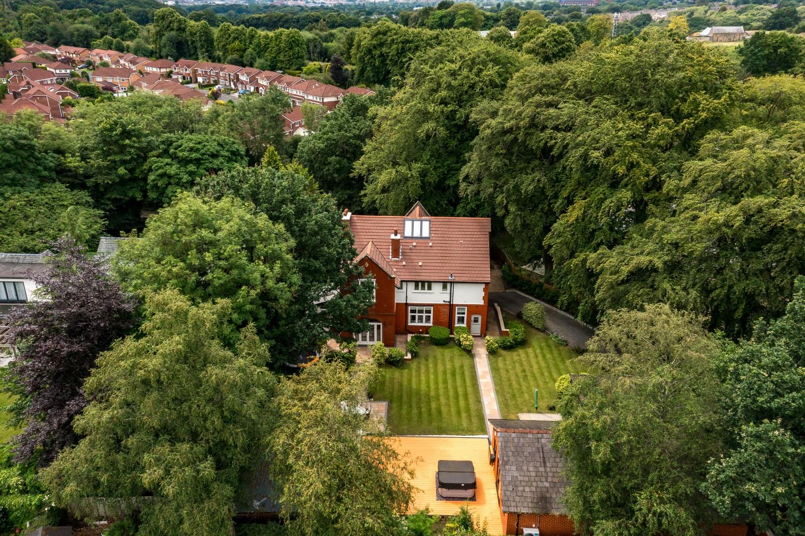 An incredibly generous and private plot. An imposing detached main residence plus several outbuildings. Charming Edwardian character and grand proportions. Welcome to Woodside House. This impressive four-bedroom home is situated in a highly sought-after and convenient spot in the ever-desirable location of Bromley Cross, set back from the road within its large, leafy green plot. It is a wonderful family home where there's a true abundance of space for everyone - both inside and out.
