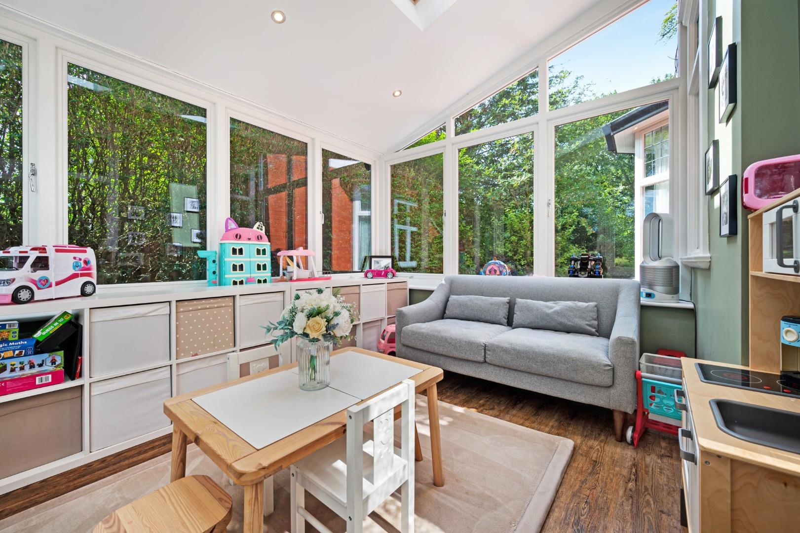 Roomy Receptions - You are truly spoilt for choice when it comes to reception rooms at Woodside. There are three main reception rooms which are all uber spacious and teeming with beautiful character. More high ceilings, big bay windows, dado rails, panelling, feature fireplaces, ornate cast iron radiators, the list goes on. And the tasteful touch of modernity throughout is the cherry on top. The main living room sits to the front of the property with a unique circular bay window in the corner pouring plenty of natural light in. The dining room is situated on the opposite side of the hallway at the front, again offering an abundance of space and character, and third main reception room used as a day lounge or TV room is situated to the rear with a gorgeous glass arched window, floor to head-height windows and French doors which open onto one of several patio areas surrounded by the greenery of the back garden. In addition to the three main reception rooms Woodside also benefits from an orangery situated off the day lounge, providing even further living space for the needs of family life.