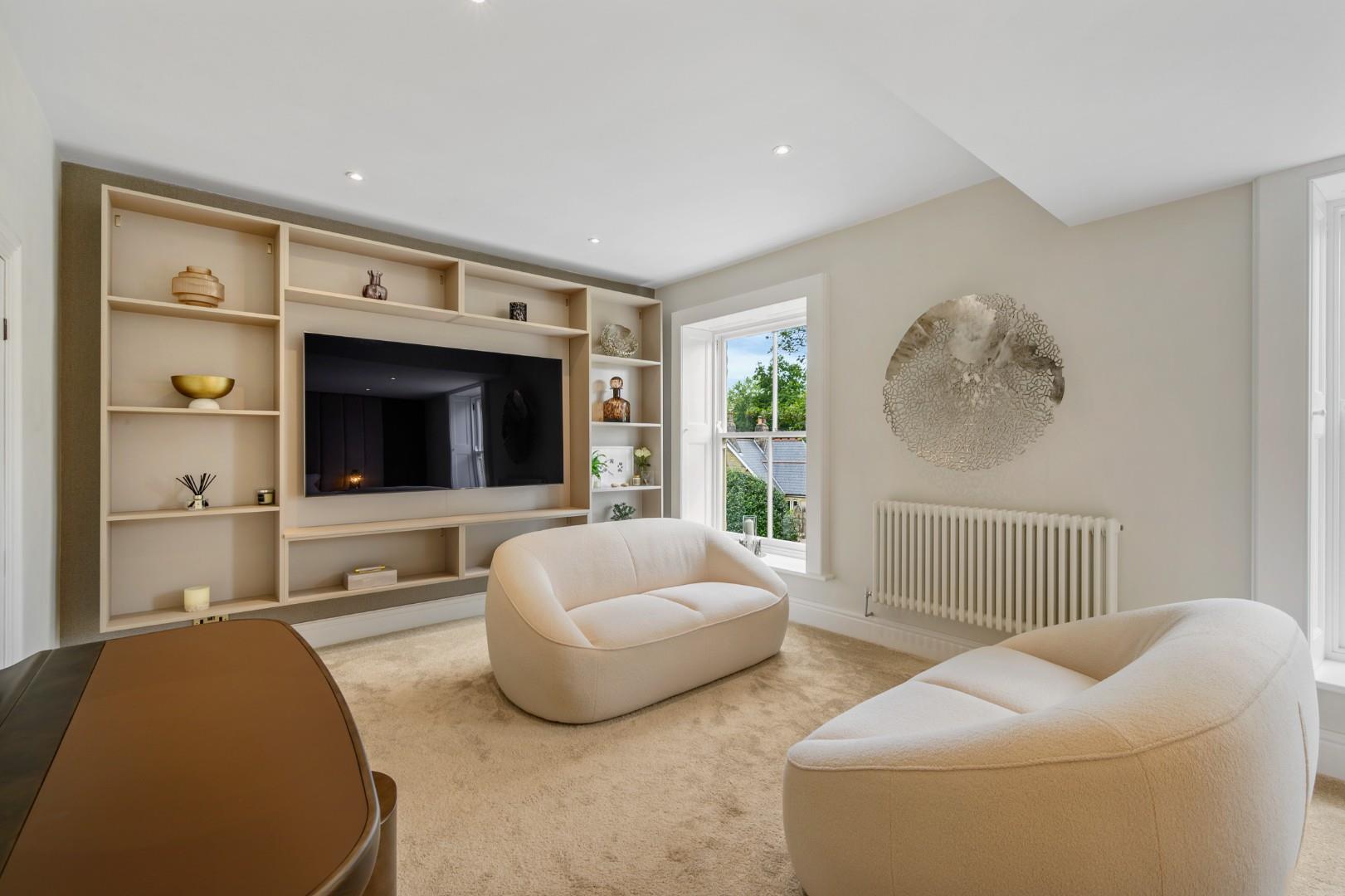 From the central hallway and up to the first floor, there is a second lounge/TV room which is certain to be a practical addition for family life.