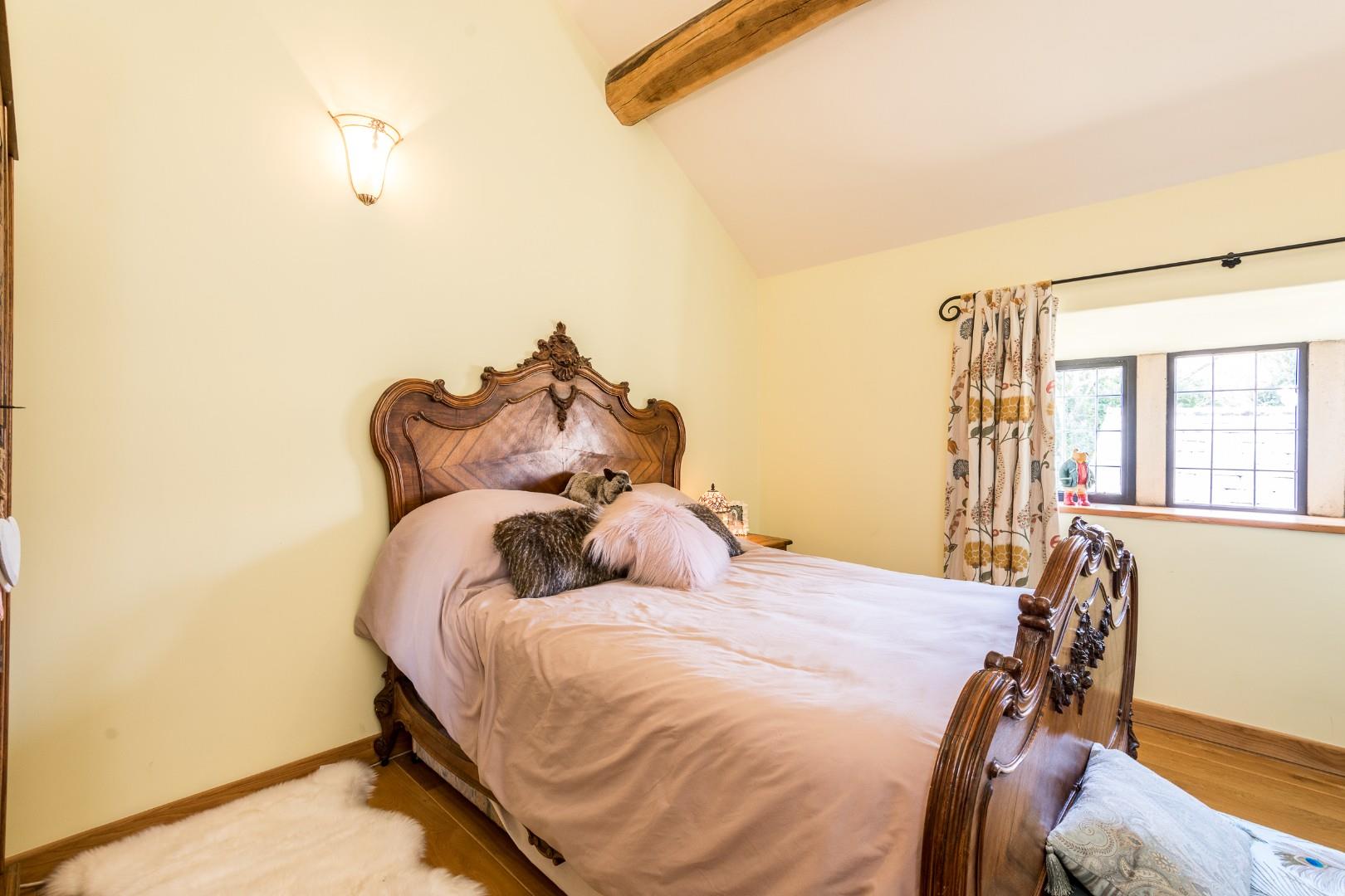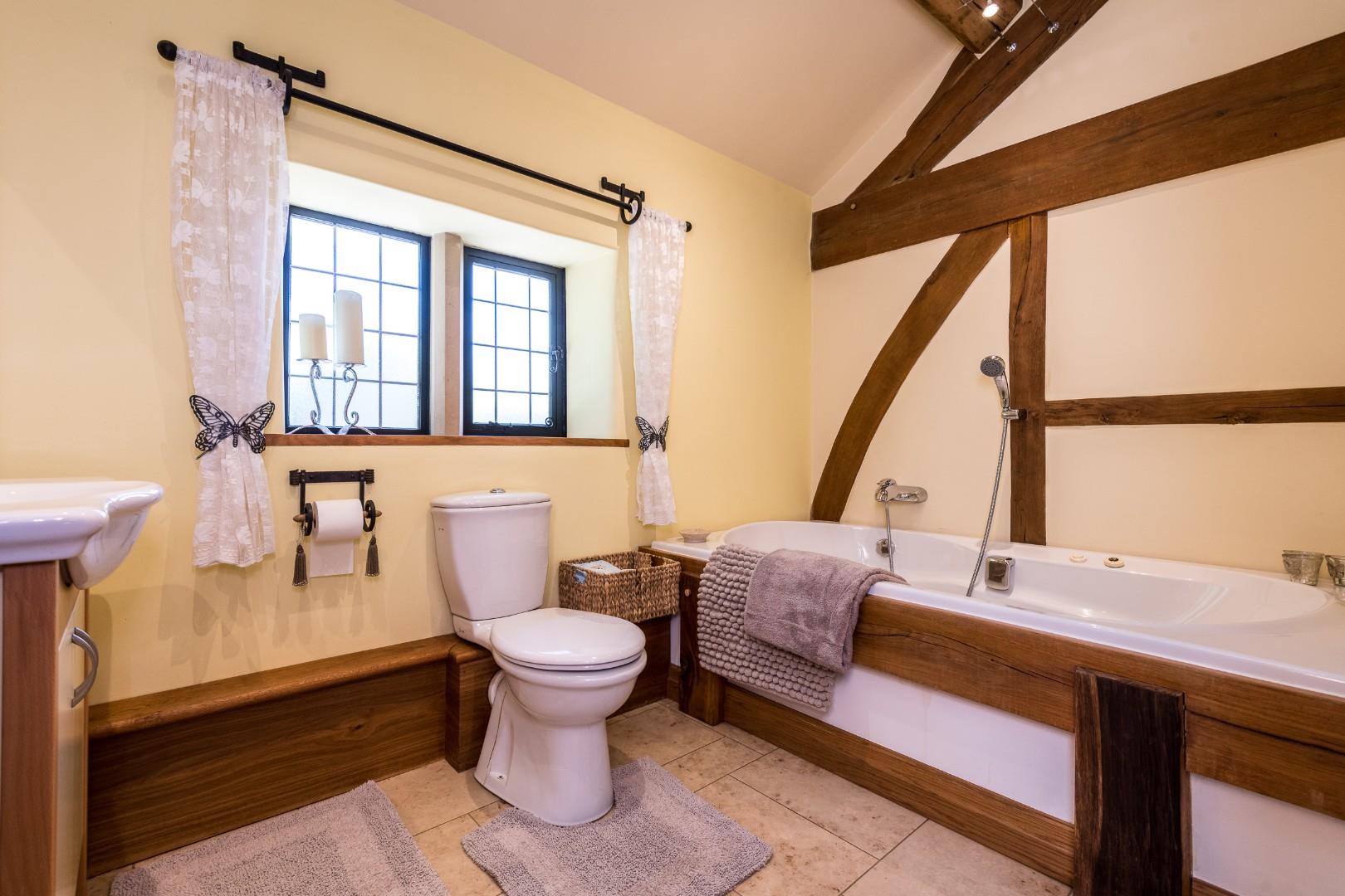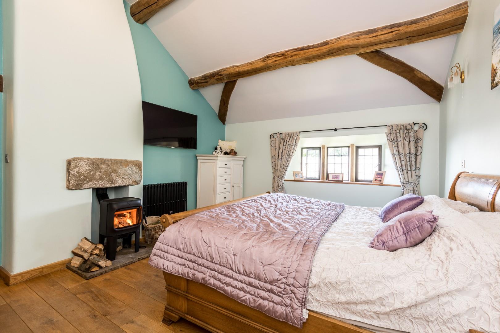 The master bedroom is a true masterpiece- as you lift the latch on the wooden door you will be greeted from the heat of the roaring log burner opposite your bed, to cuddle up to as you rest your eyes for the night. A walk-in wardrobe will ensure dressing for the day to be a pleasure, getting ready with ease after freshening up in your en-suite. it has a slipper bath to die for with an overhead shower and woodland views as you soak!