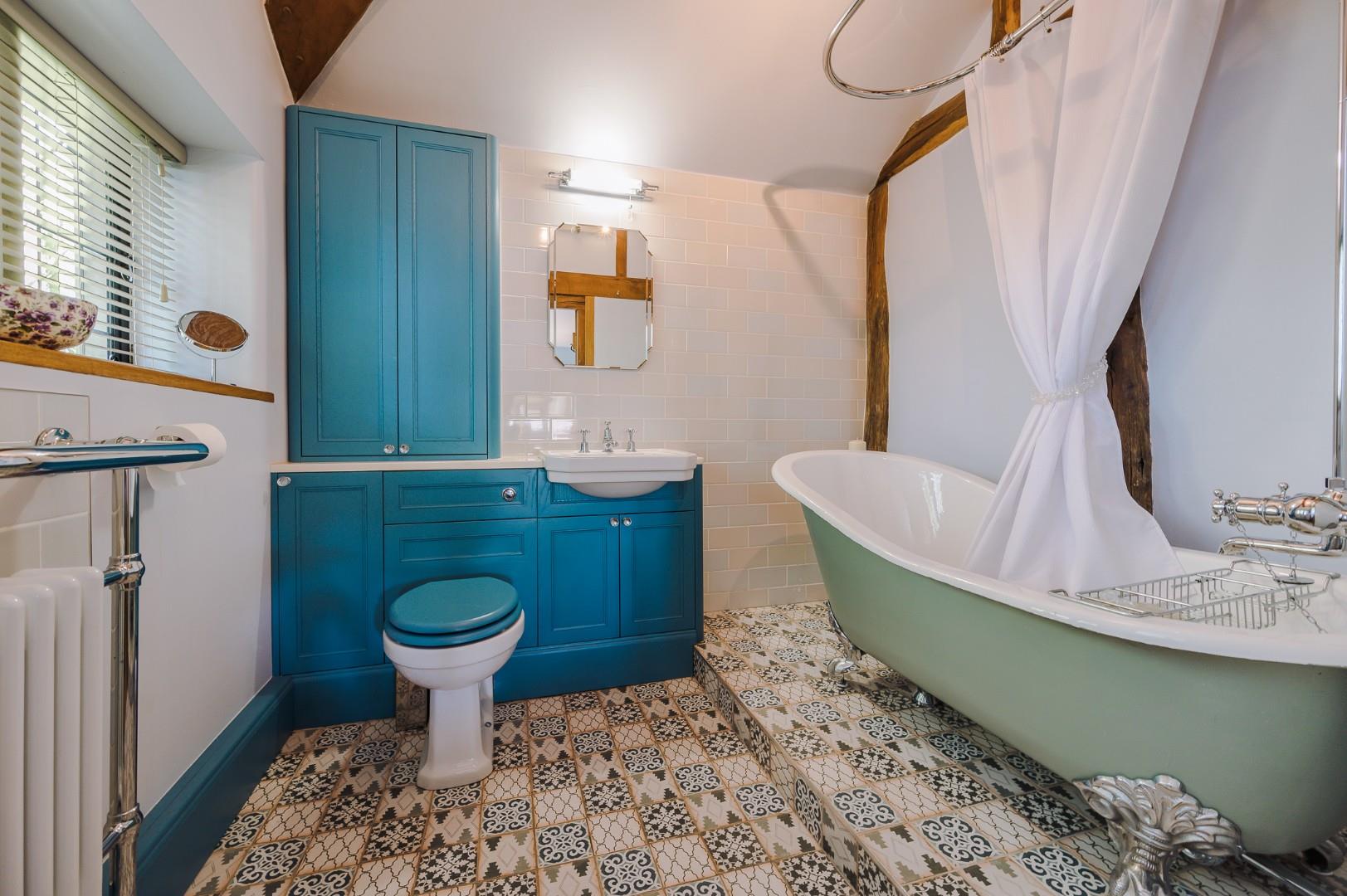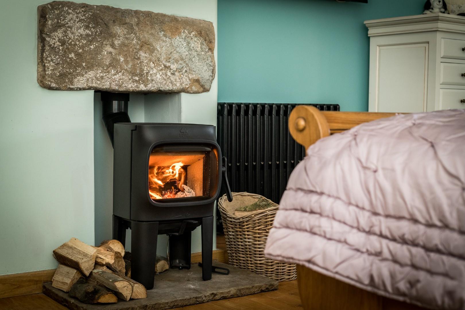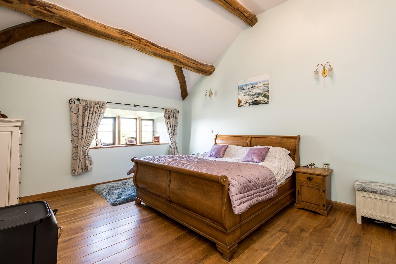 The master bedroom is a true masterpiece- as you lift the latch on the wooden door you will be greeted from the heat of the roaring log burner opposite your bed, to cuddle up to as you rest your eyes for the night. A walk-in wardrobe will ensure dressing for the day to be a pleasure, getting ready with ease after freshening up in your en-suite. it has a slipper bath to die for with an overhead shower and woodland views as you soak!