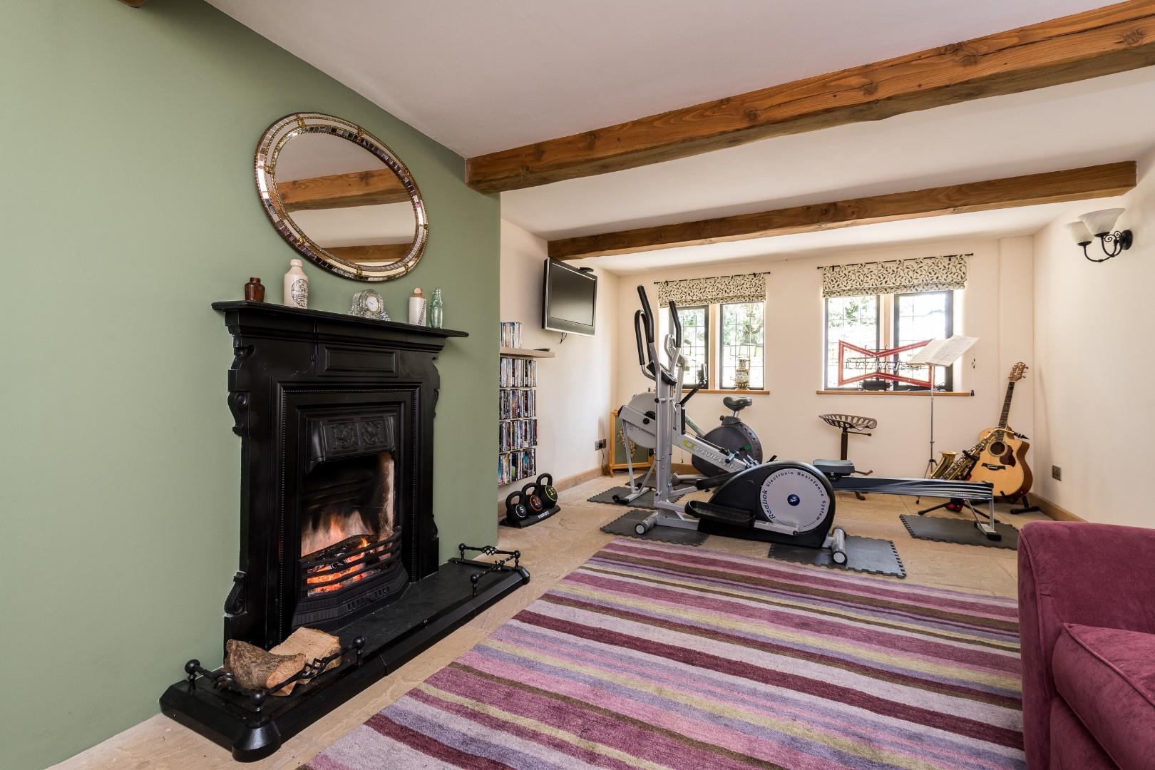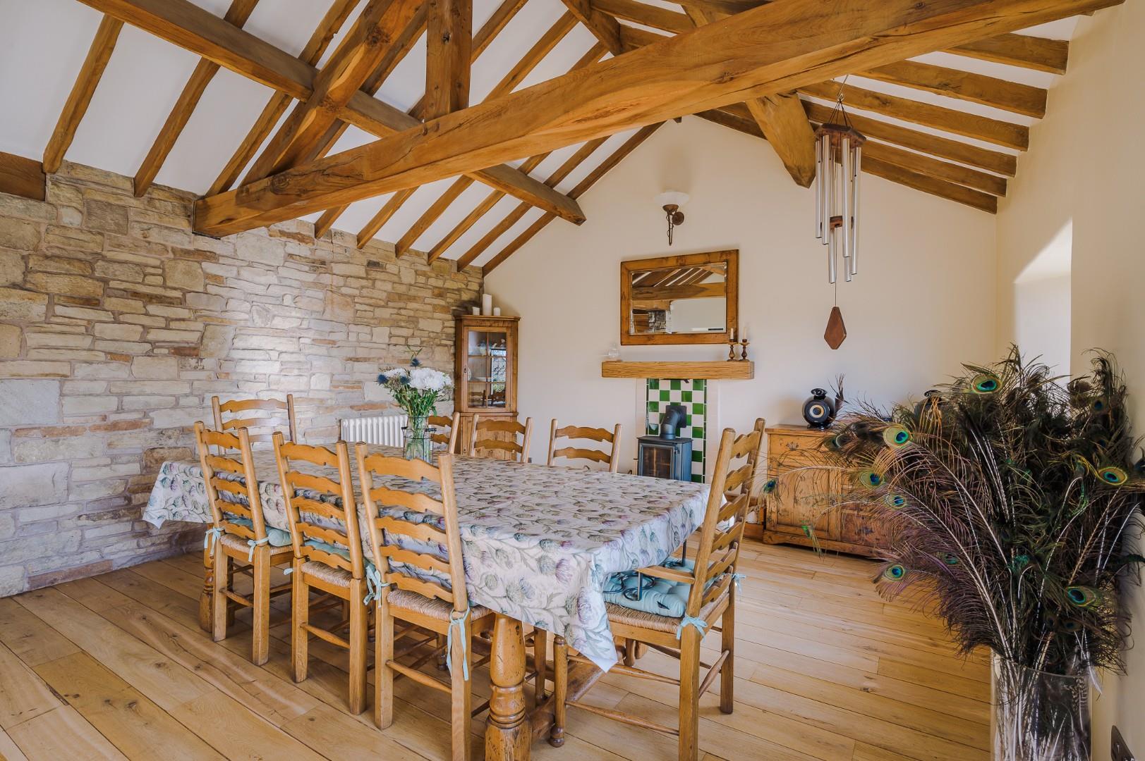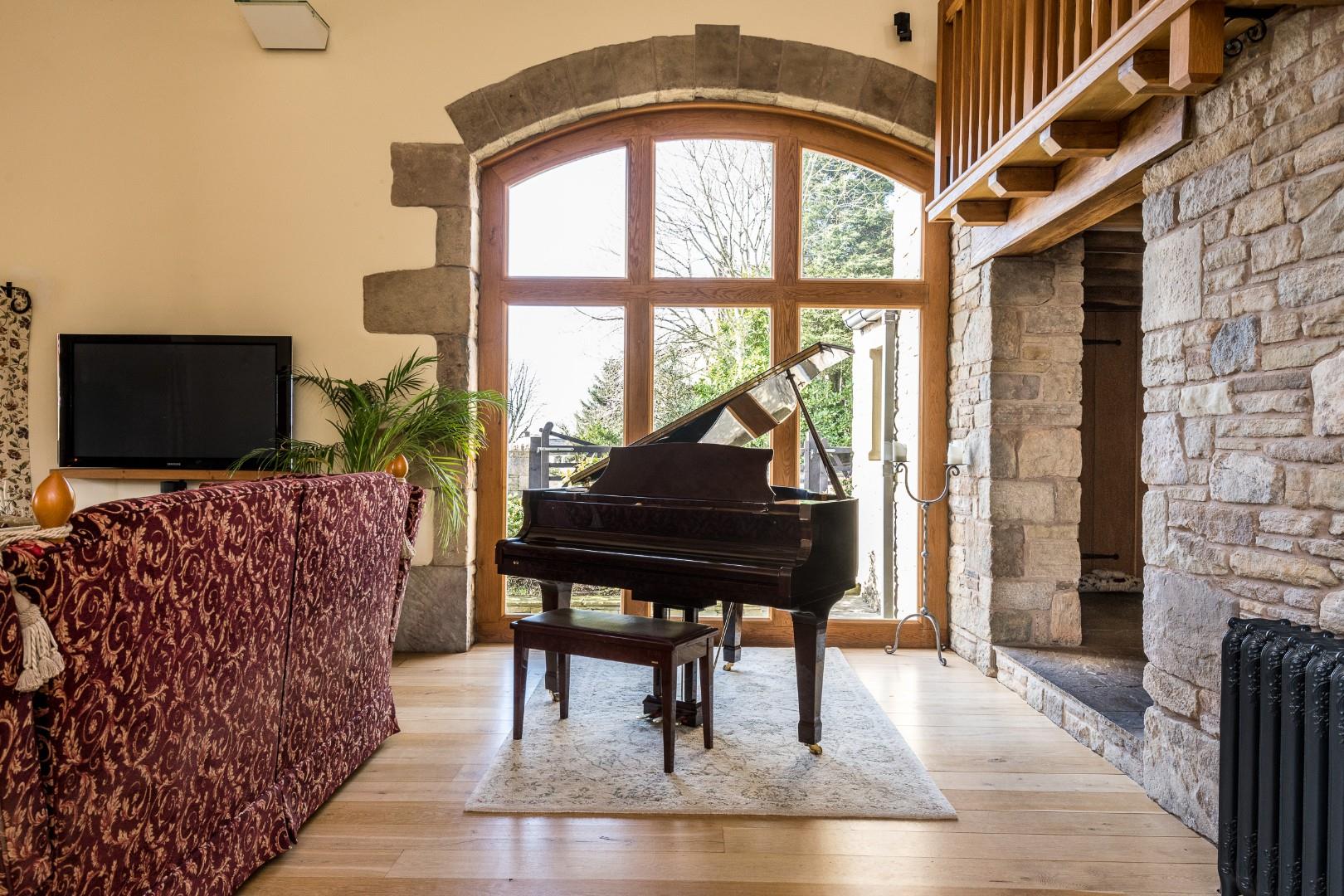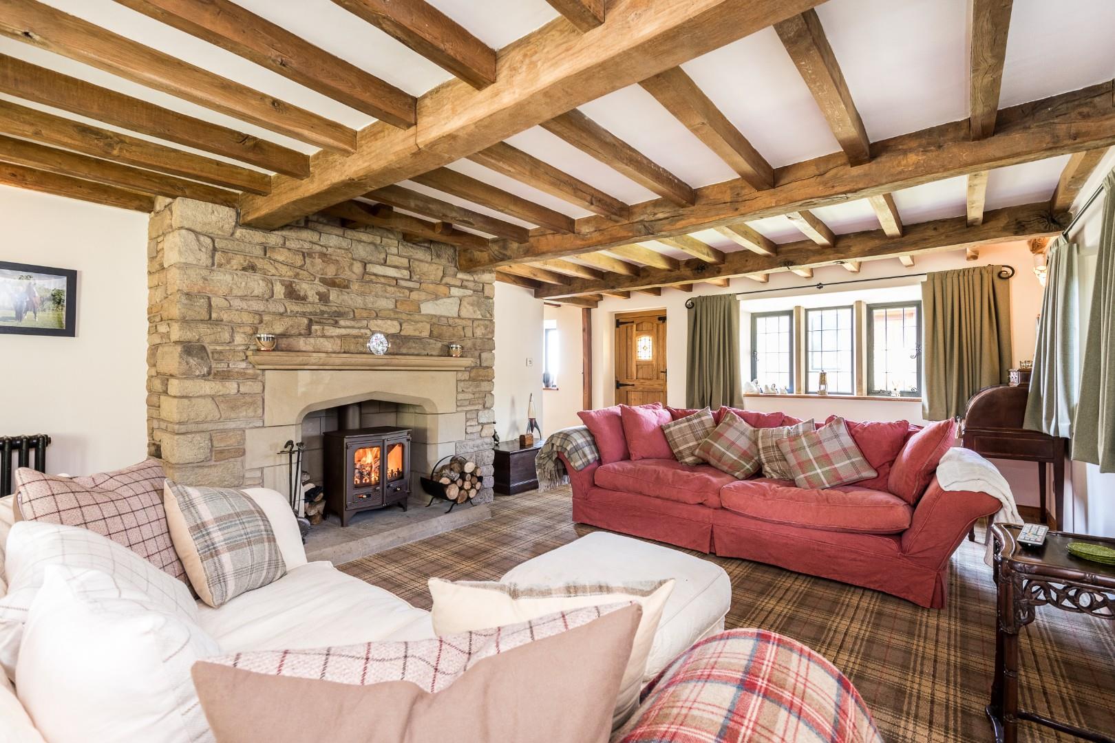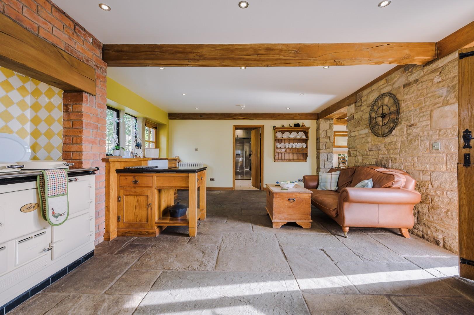 The formal lounge beckons you in from the entrance hall, but what feature to take in first?! Two adjacent huge arched windows mirror each other dressing both edges of the room, flooding in light and framing the outdoors like a picture. Double doors open up onto the courtyard allowing a gentle breeze to lift the home on a summers day. and for those cosy winter nights the log burner flickers away taking centre stage, set within a huge stone fireplace which reaches right up to the tip of the vaulted ceiling. This is a room made for entertaining, in fact, the whole house is. you can guarantee it will be hard to get rid of your guests at the end of the day!