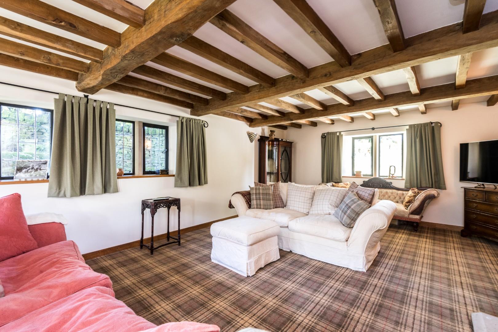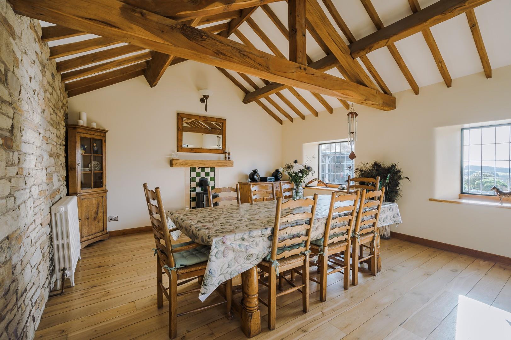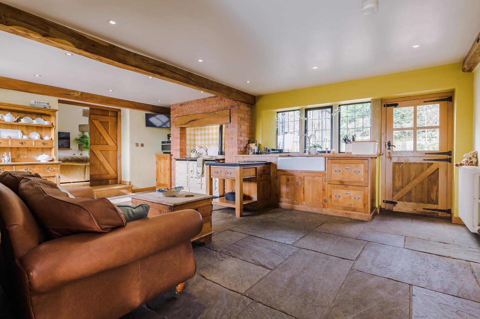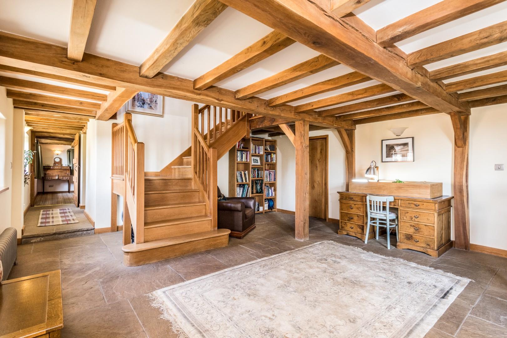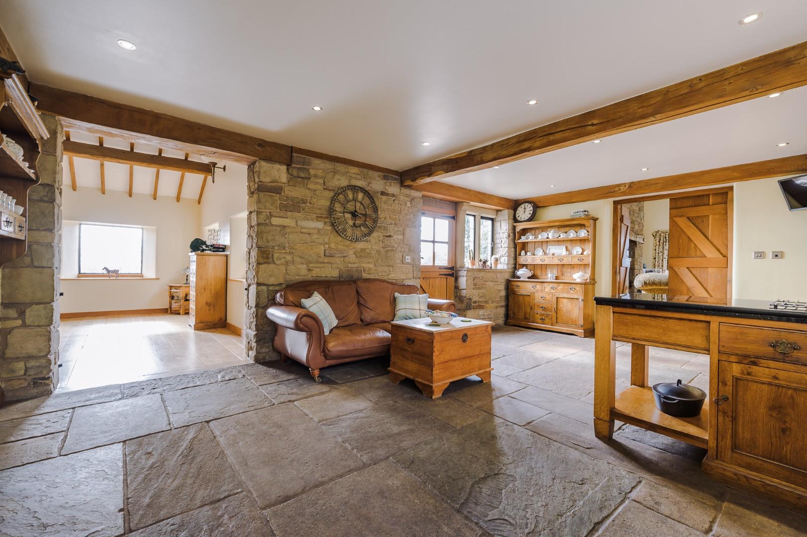 The formal lounge beckons you in from the entrance hall, but what feature to take in first?! Two adjacent huge arched windows mirror each other dressing both edges of the room, flooding in light and framing the outdoors like a picture. Double doors open up onto the courtyard allowing a gentle breeze to lift the home on a summers day. and for those cosy winter nights the log burner flickers away taking centre stage, set within a huge stone fireplace which reaches right up to the tip of the vaulted ceiling. This is a room made for entertaining, in fact, the whole house is. you can guarantee it will be hard to get rid of your guests at the end of the day!