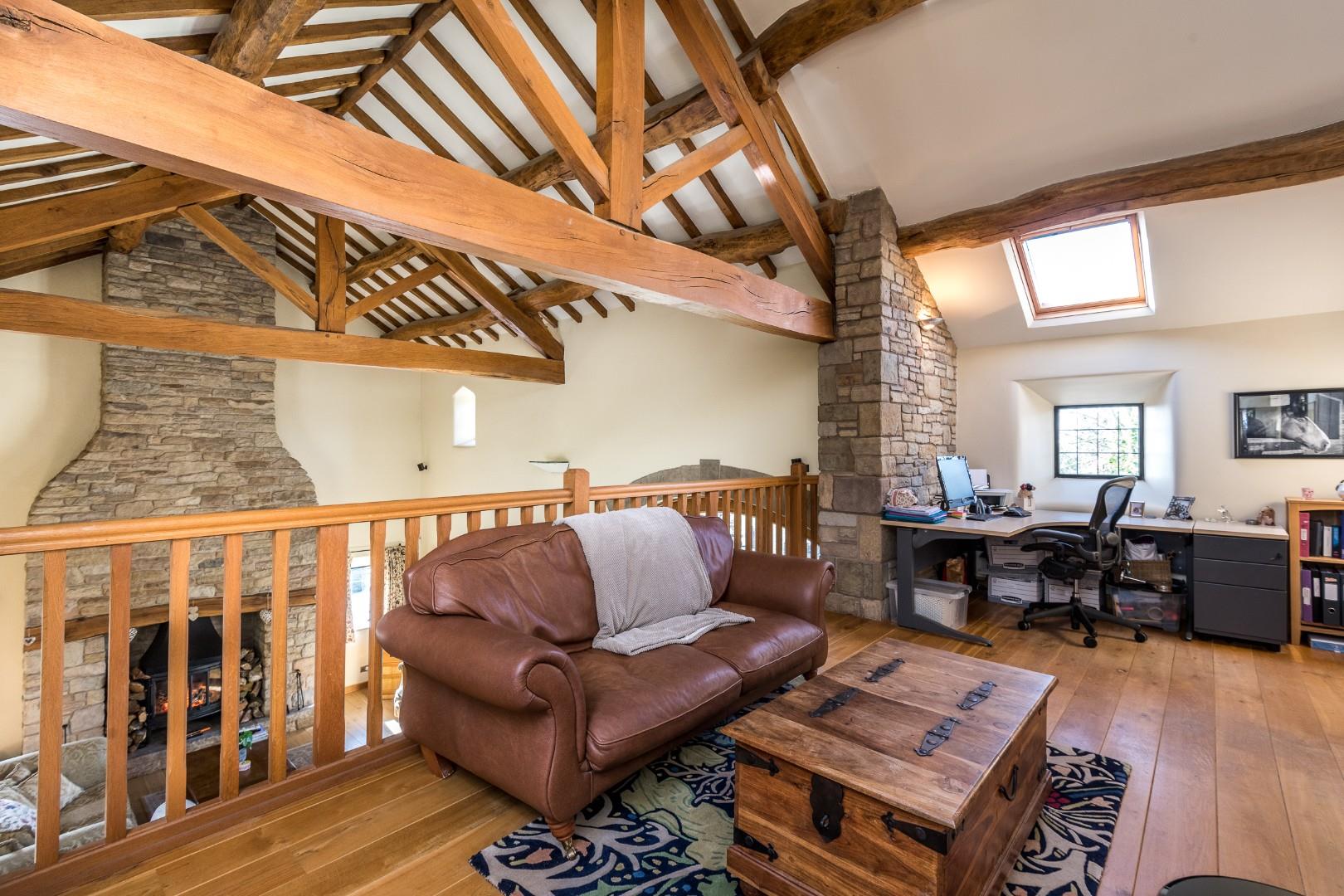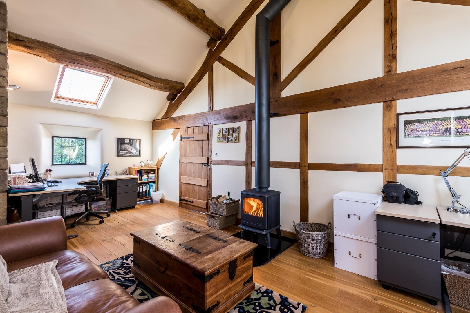 Work Away - Should you find that your days' work can sometimes be done from the comfort of your own home, then my oh my does this home have the perfect setting! Up the dog leg solid wooden stairs you will find a mezzanine office overlooking the formal living room, separate from the buzz of family life yet still very much connected, it's a bright, inspiring and motivating setting to work from, with the added bonus of two workstations and sublime cosiness from the multifuel log burner set between the two.